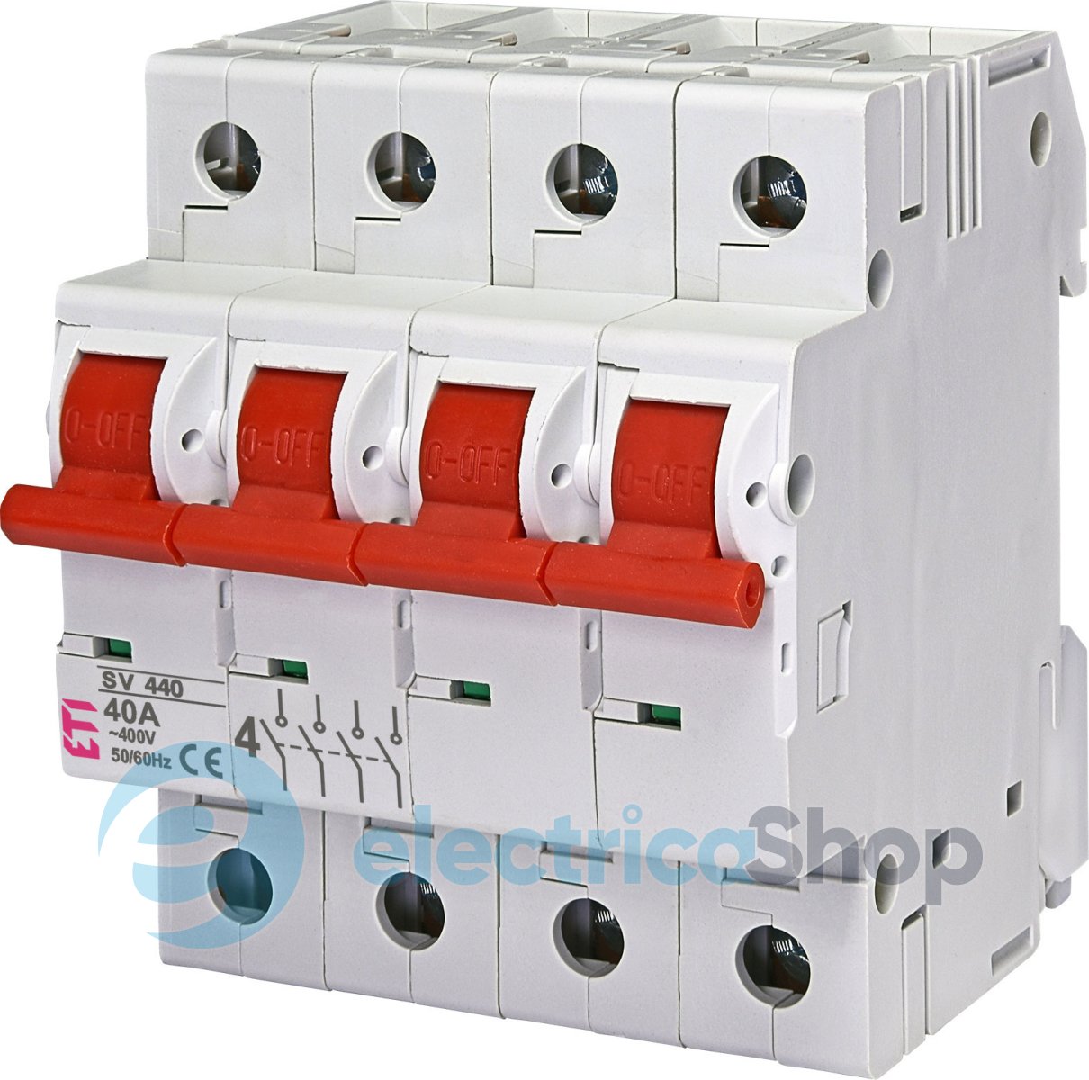Чотириполюсний вимикач навантаження ETI SV463 застосовується для встановлення в розподільчих щитах як головний вимикач, а також комутації окремих ланцюгів.