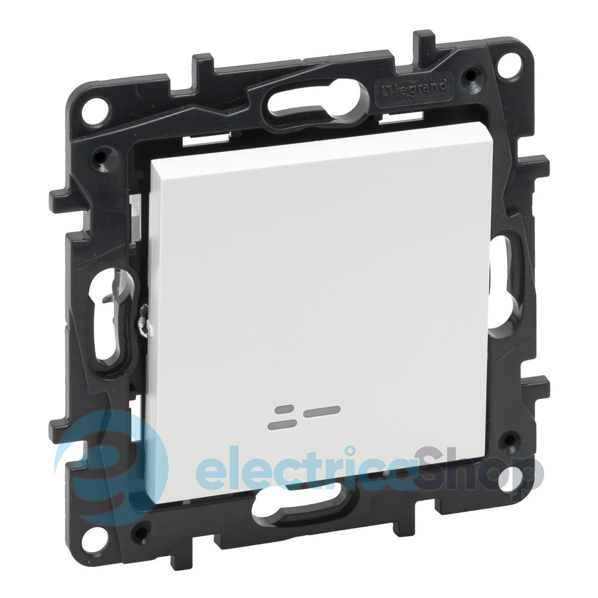 Вимикач 1-клавішний для увімкнення/вимкнення однієї групи освітлення з одного місця. Вимикач має світлодіодне підсвічування, яке підсвічує клавіші у вимкненому стані.