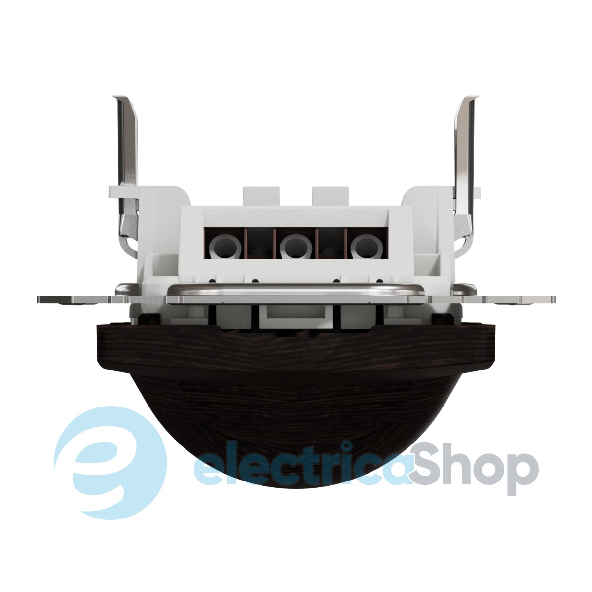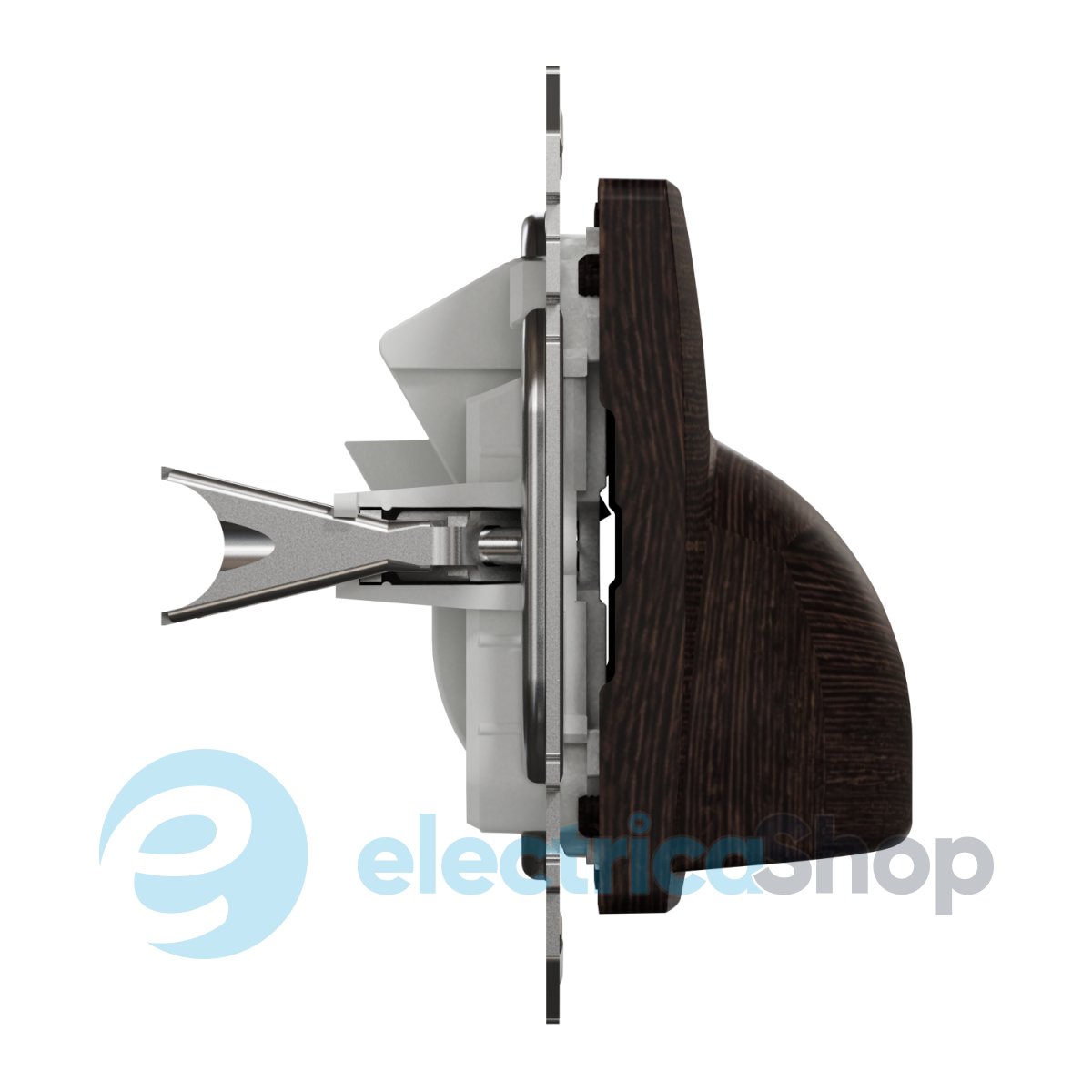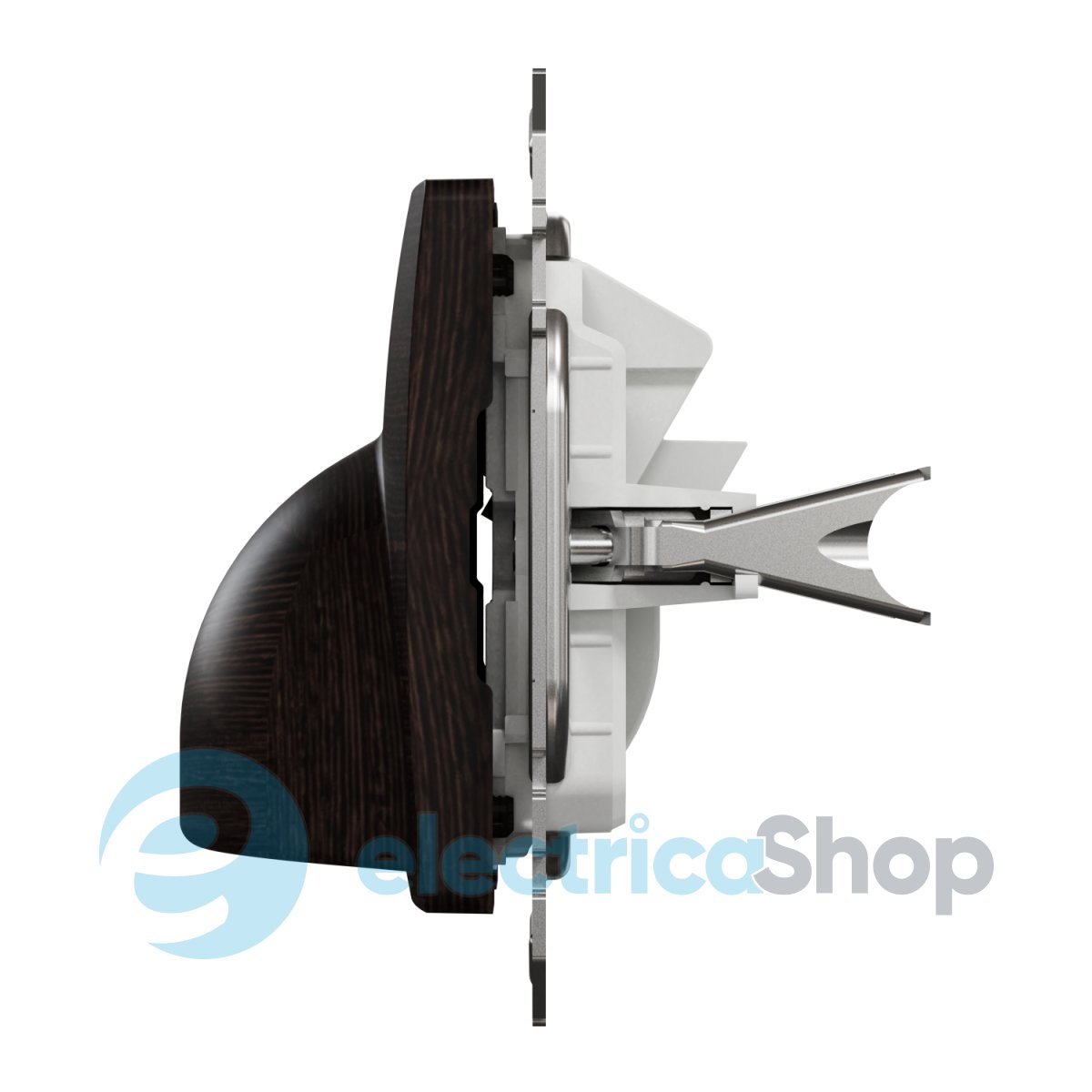 Розетка для декоративного виведення кабелю має текстурну поверхню під дерево (венге) та є аксесуаром серії Sedna Design & Elements від Schneider Electric.