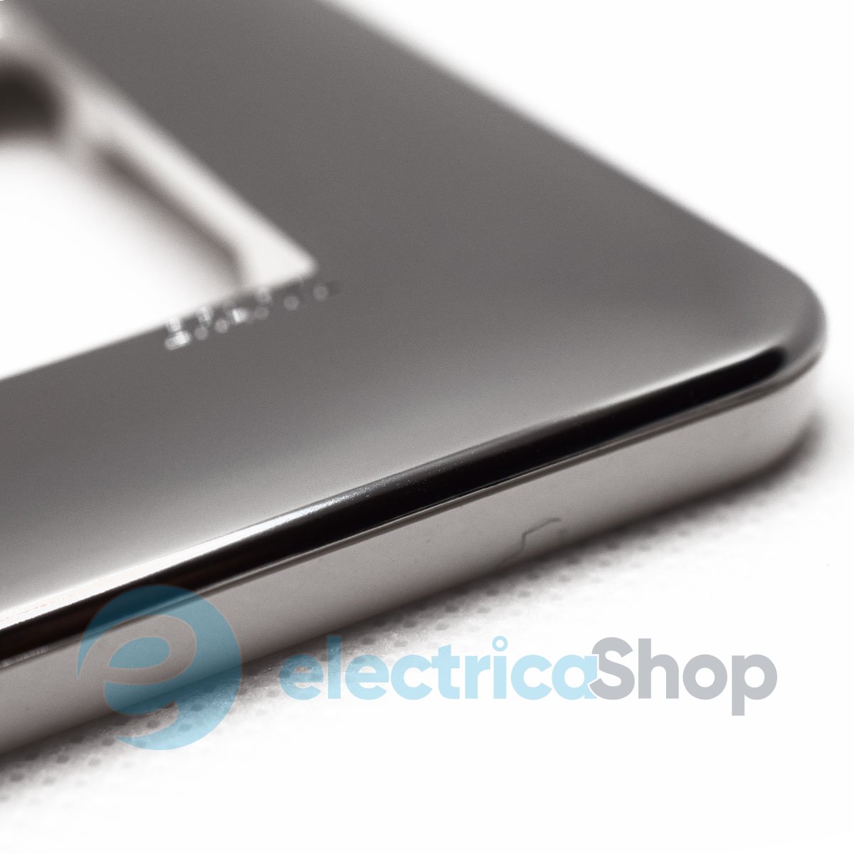Рамка у хромовому кольорі з колекції «Latina» виконана із пластику з імітацією металу і може встановлюватись у горизонтальному та вертикальному положенні.