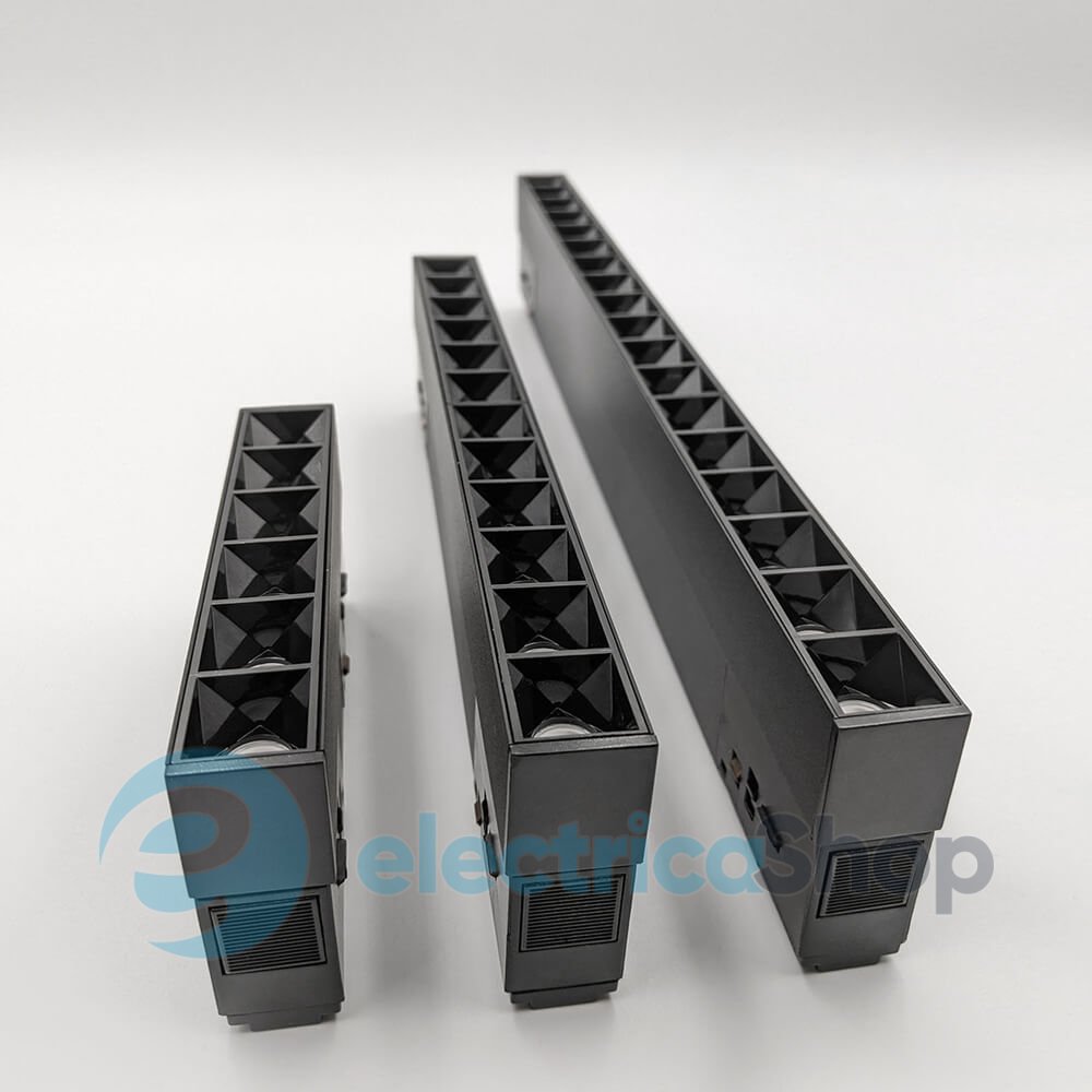 Магнітний трековий світильник Skarlat LUTIS RGD2002 12×1.5W BK 3000K матиме гарний вигляд у сучасних інтер'єрах, допоможе створити світлові акценти.