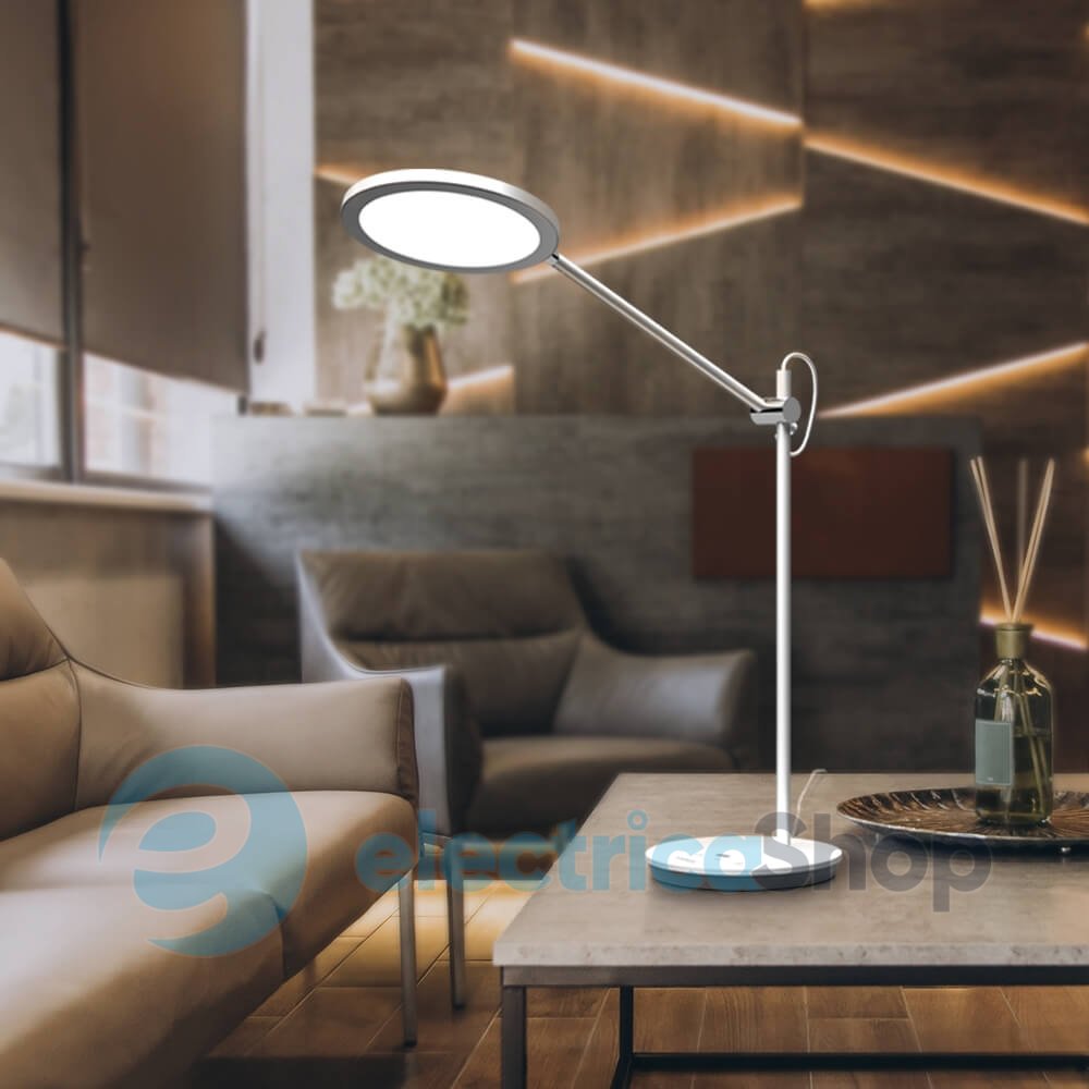 Лампа має сенсорний вимикач. Конструкція плафона дозволяє регулювати напрямок світла. Лампа має комфортне світло, що залишає менше відблисків на моніторах комп'ютерів, інших поверхнях, при цьому очі менше втомлюються.