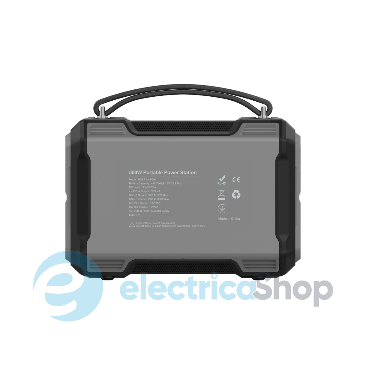 Портативна електростанція з акумулятором ємністю 505 W здатна забезпечити електроживленням прилади потужністю до 500 Вт.