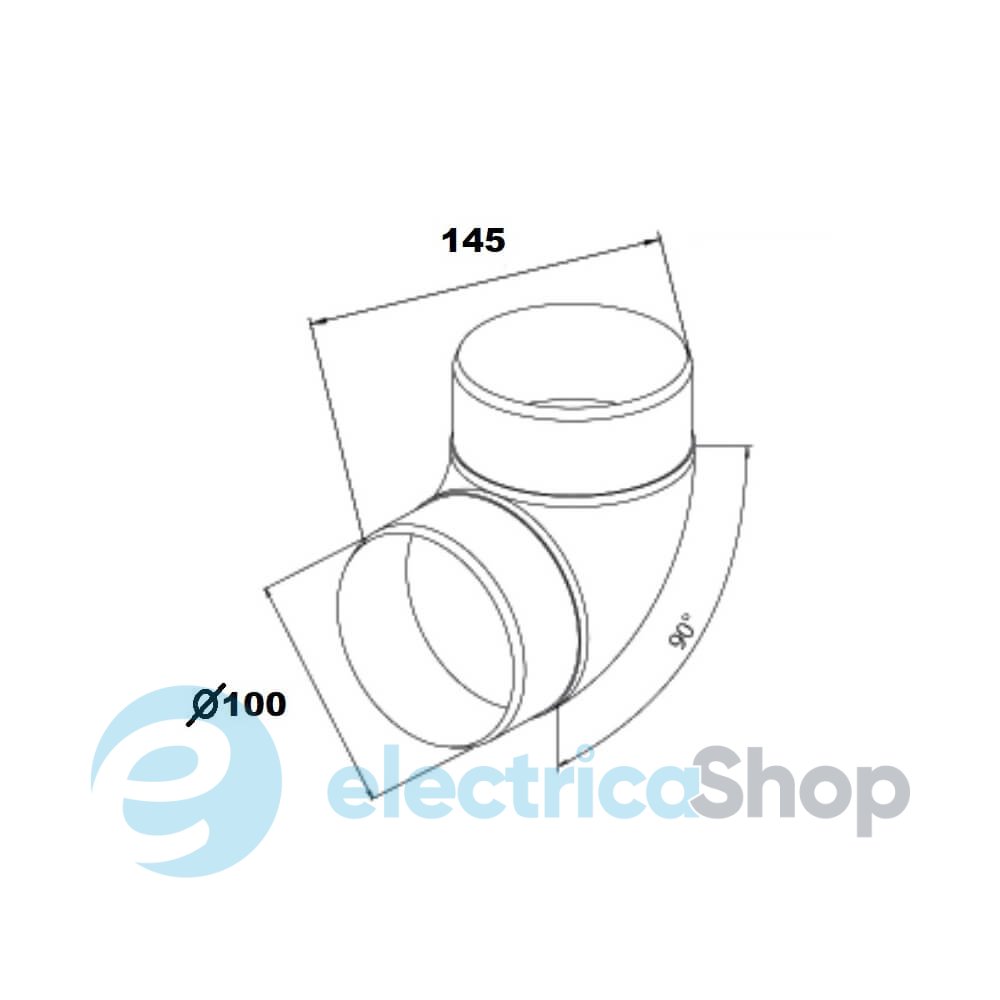Коліно виготовлене з міцного полімеру, підходить для круглих каналів. Розмір 100х145 мм.