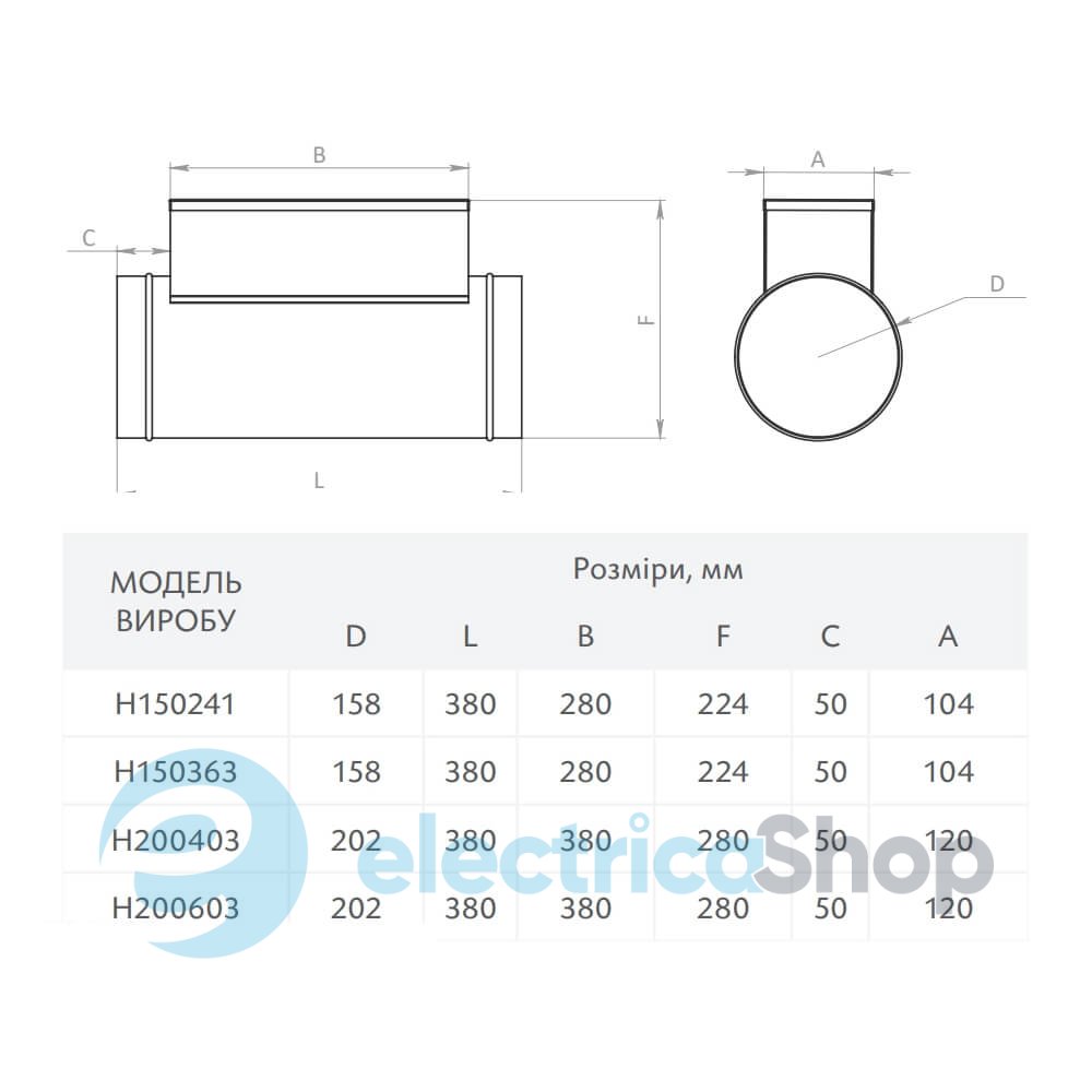 - Діаметр патрубка: 200 мм