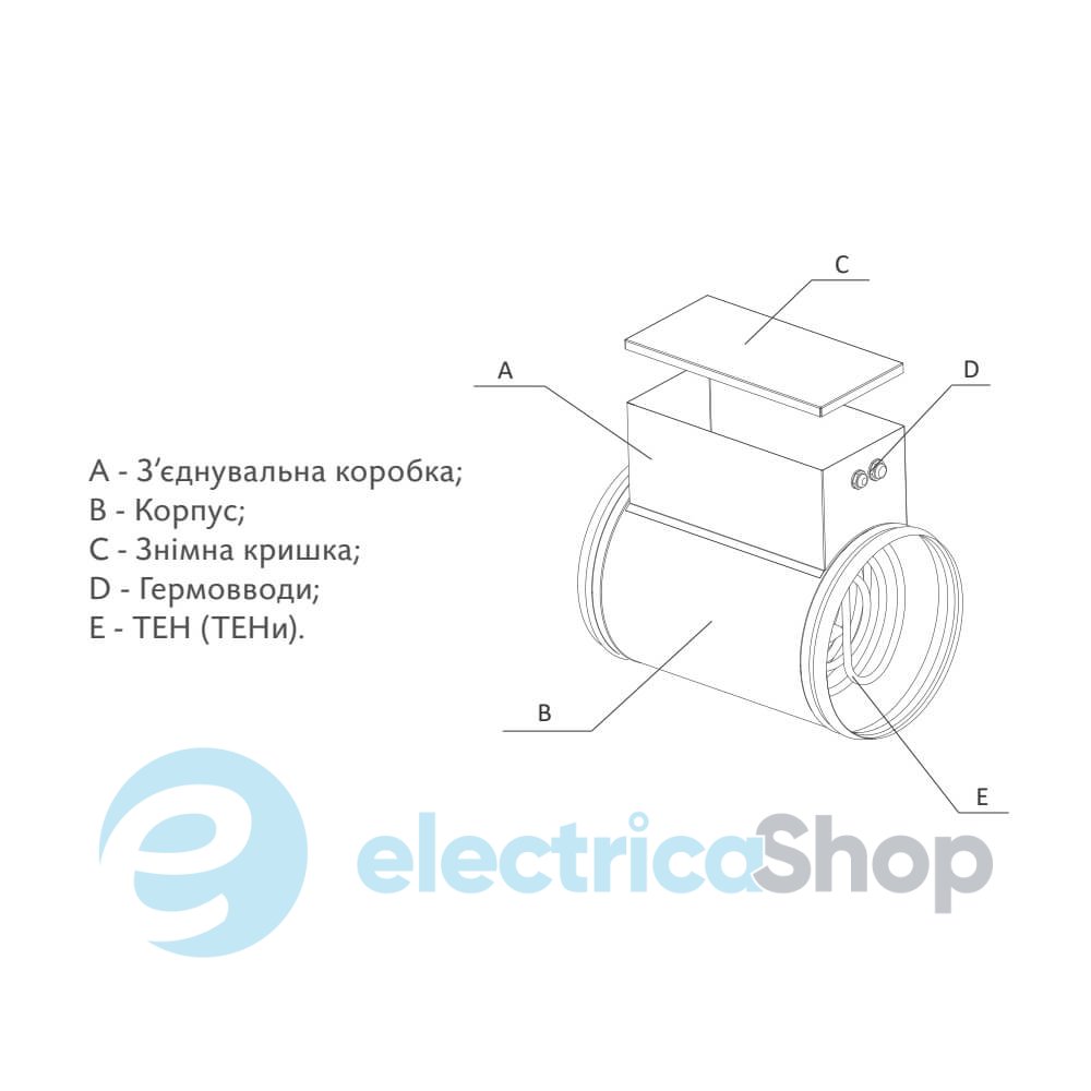 Нагрівачі канальні є компонентними виробами та не підлягають автономній експлуатації. Виріб розрахований на тривалу роботу без відключення від електромережі. Повітря, яке переміщається, не повинно містити горючих або вибухонебезпечних сумішей, хімічно активних випарів, липких речовин, волокнистих матеріалів, крупного пилу, сажі, жирів або середовищ, які сприяють утворенню шкідливих речовин (отрута, пил, хвороботворні мікроорганізми).Основні характеристики