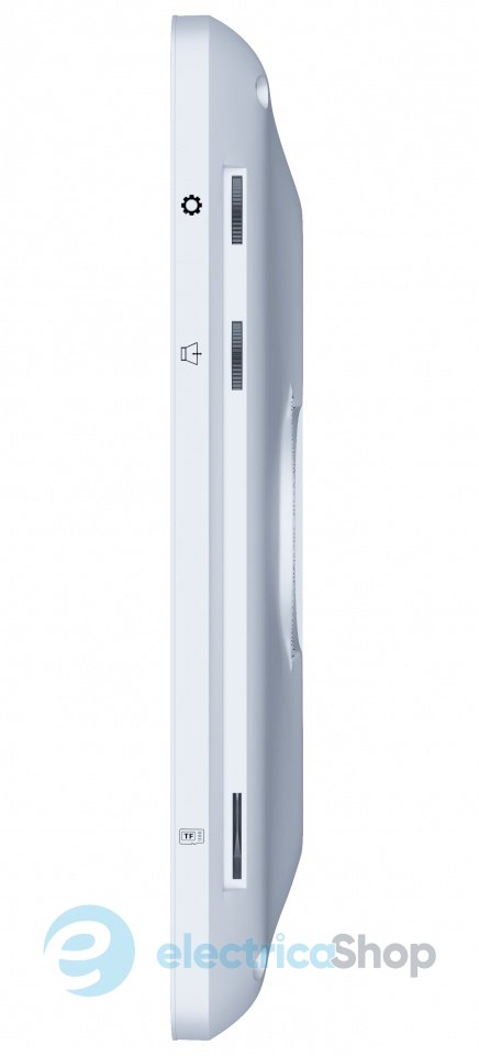 Компактний відеодомофон має ультратонкий корпус та виконаний у срібному кольорі.