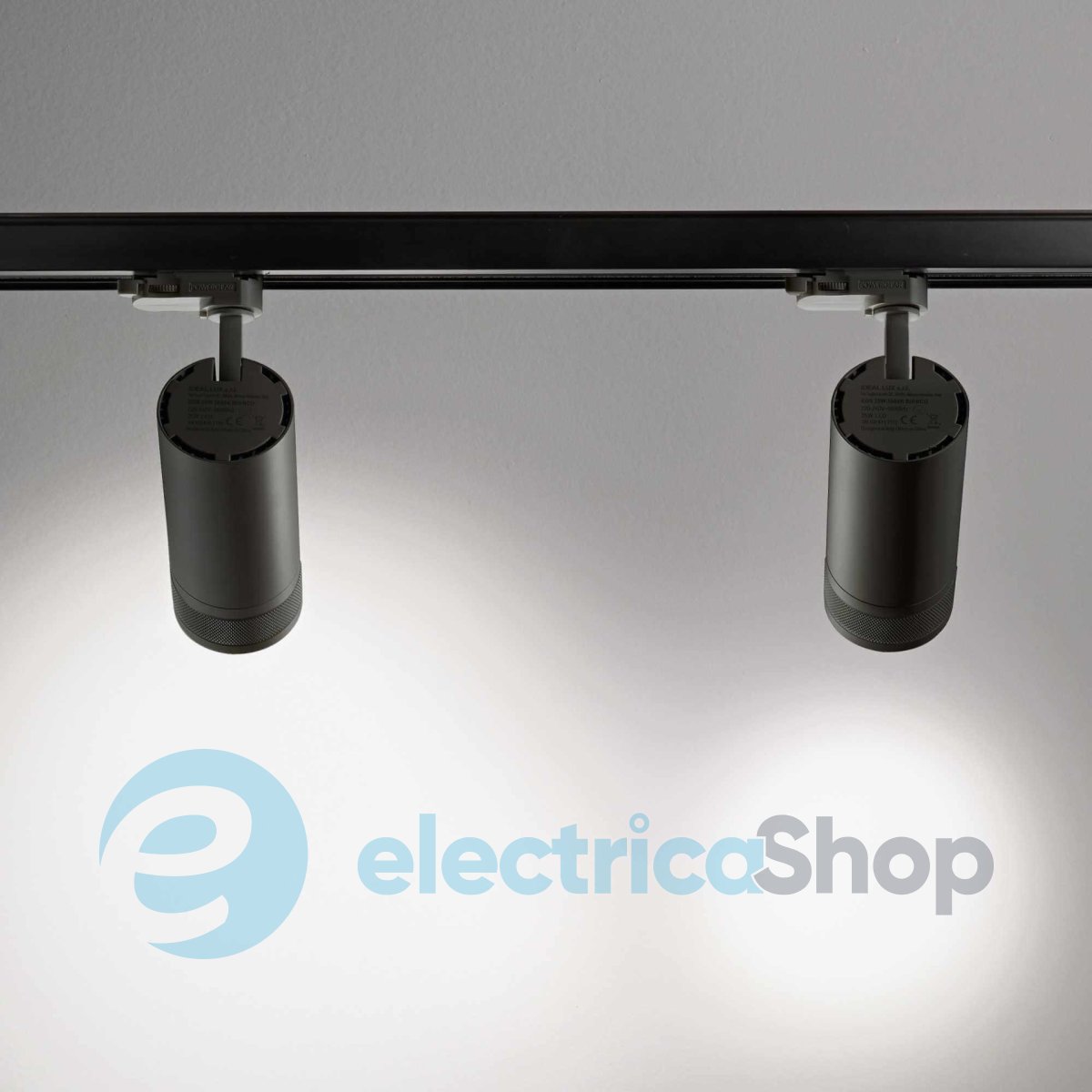 Трековий світильник Ideal Lux EOS 15W Track 276182 виготовлений з металу. Напрямок світла можна змінювати, плафон рухомий. Призначений для встановлення на 3-фазну шину.