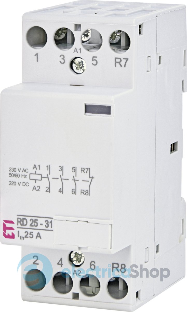 Контактор модульний RD 25-31 230V AC / DC використовуються для дистанційного керування і автоматичного контролю електричних пристроїв і устаткування в системах освітлення, системах опалення, системах вентиляції, комутації двигунів невеликої потужності і т.д.