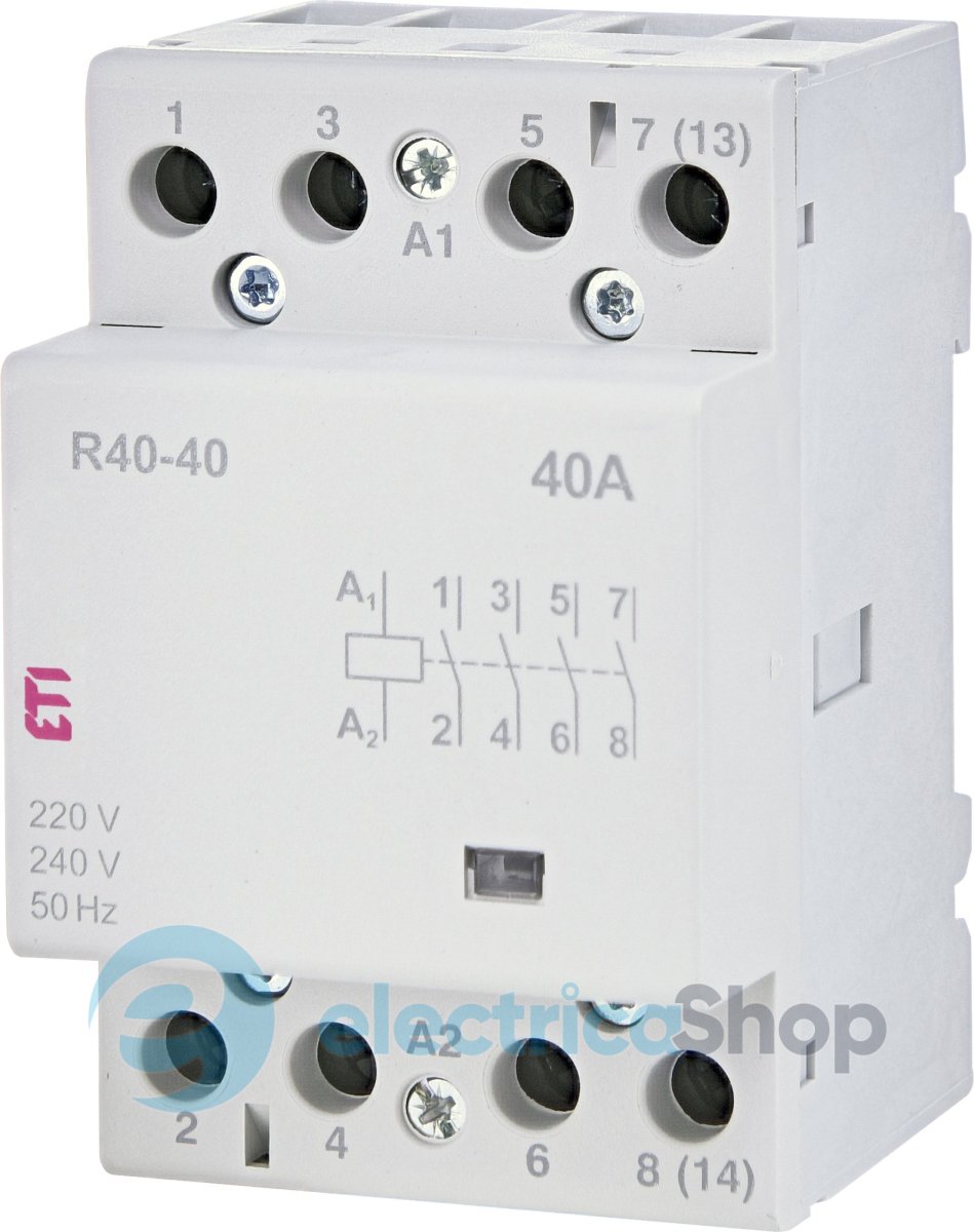 Контактор модульний R 40-40 230V AC використовується для дистанційного керування та автоматичного контролю електричних пристроїв та обладнання в системах освітлення, системах опалення, вентиляції, комутації двигунів невеликої потужності тощо.