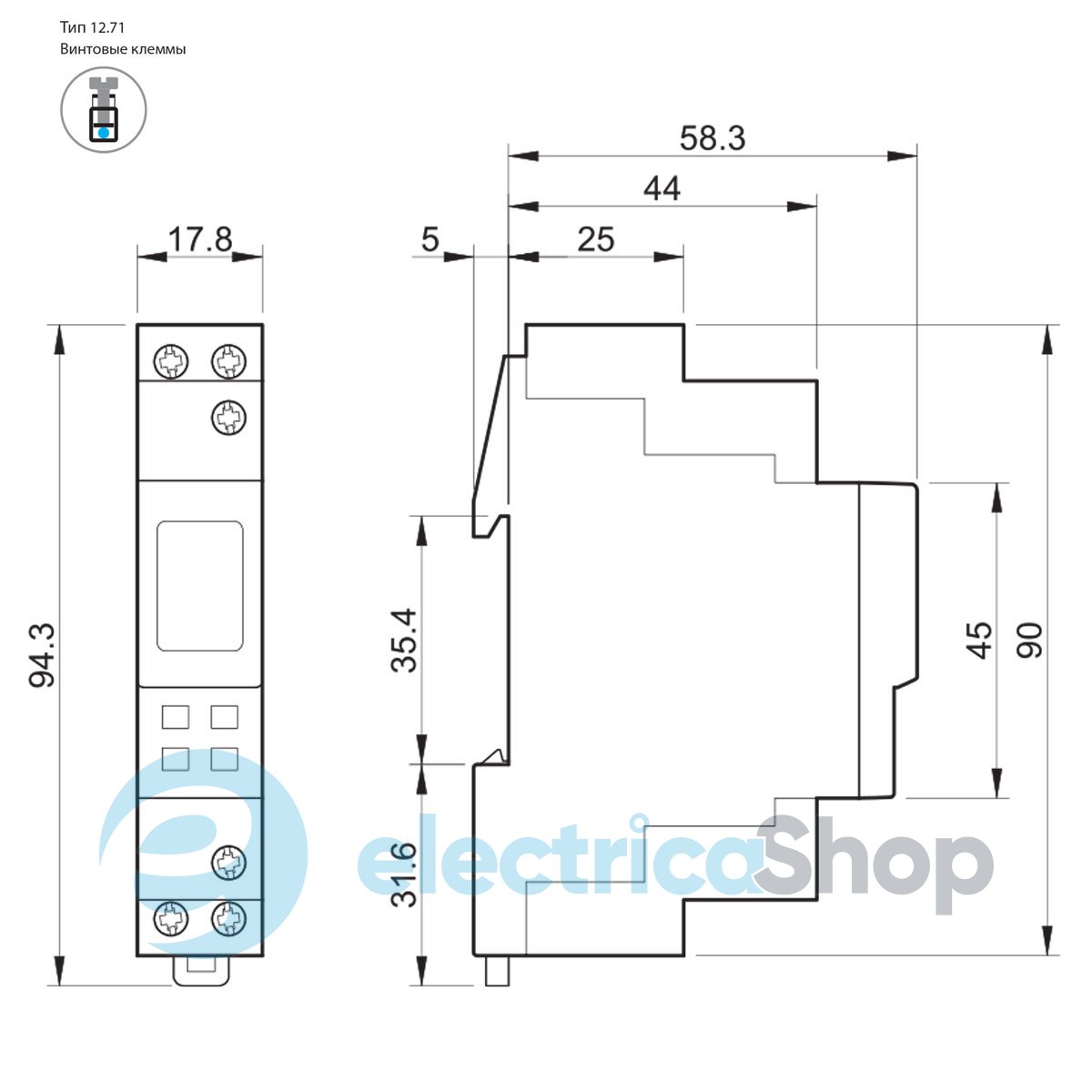 – Встановлення на рейку 35 мм (EN 60715).Артикул: 12.71.0.024.0000