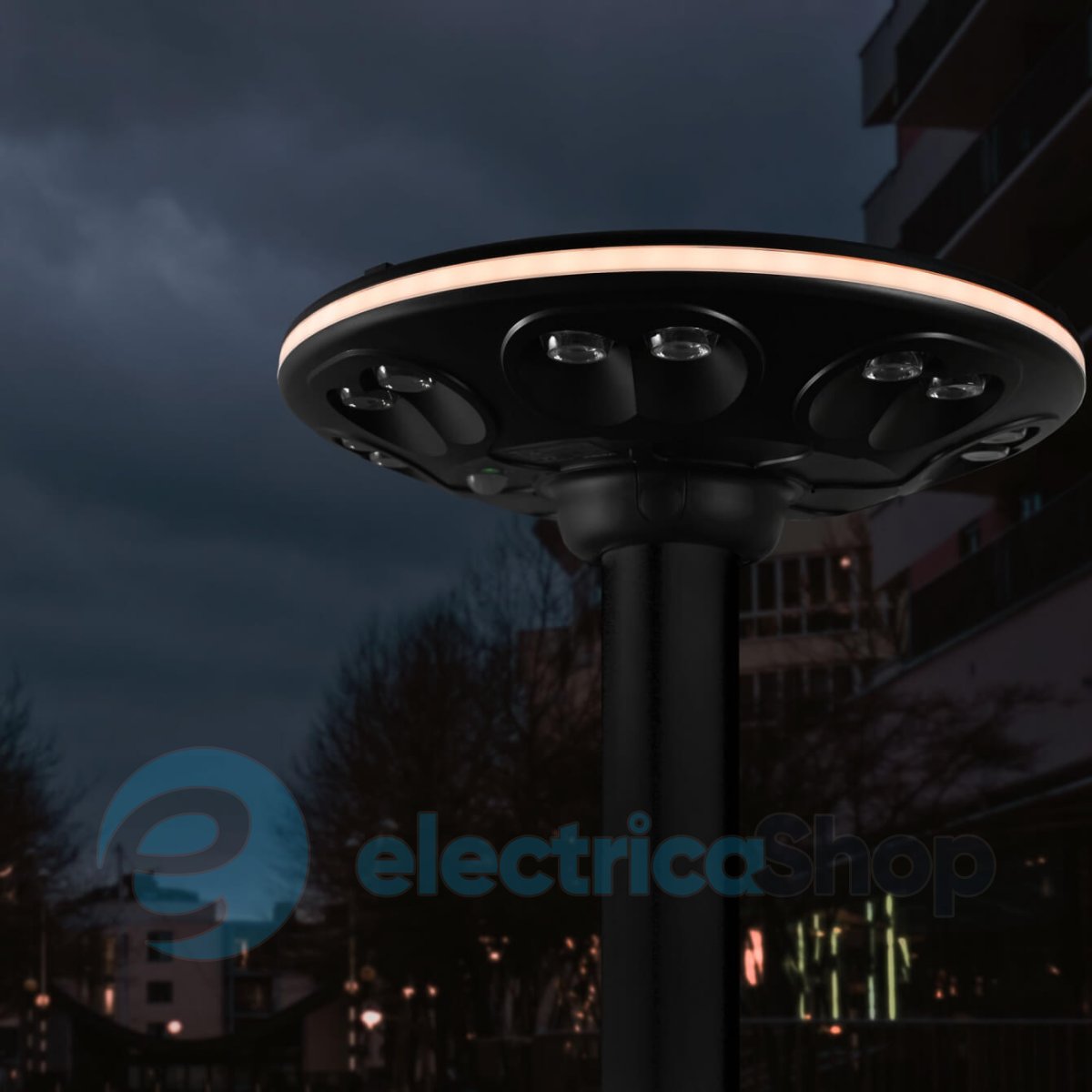 Має датчик руху та вбудовану сонячну панель, що забезпечує автономну роботу світильника. Потужність панелі – 12W 5V. Ємність акумулятора (LiFePO4) – 12Ah.