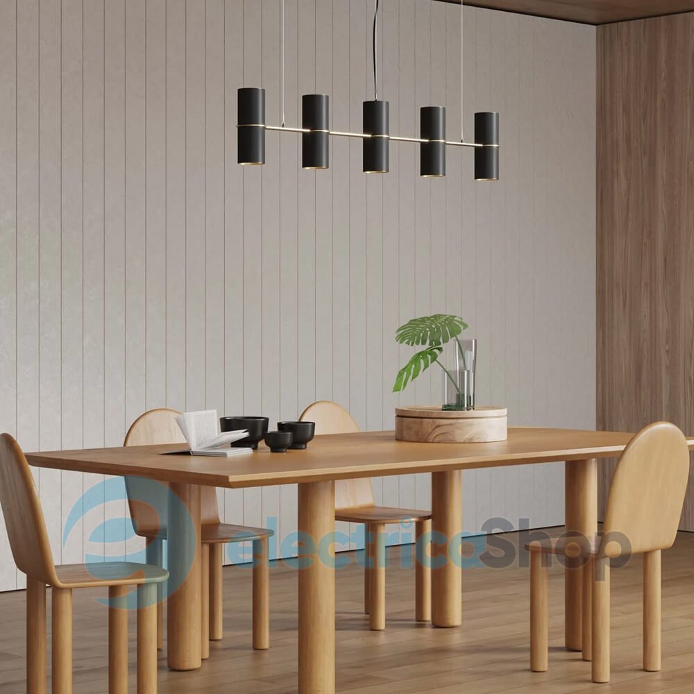 Люстра PikArt 29184-4 BINO 9M має плафони у вигляді циліндрів, що дають світло нагору та вниз. Завдяки дизайну світильник можна розташувати вздовж вузького приміщення або над столом. Добре поєднується зі світильниками серії BINO.
