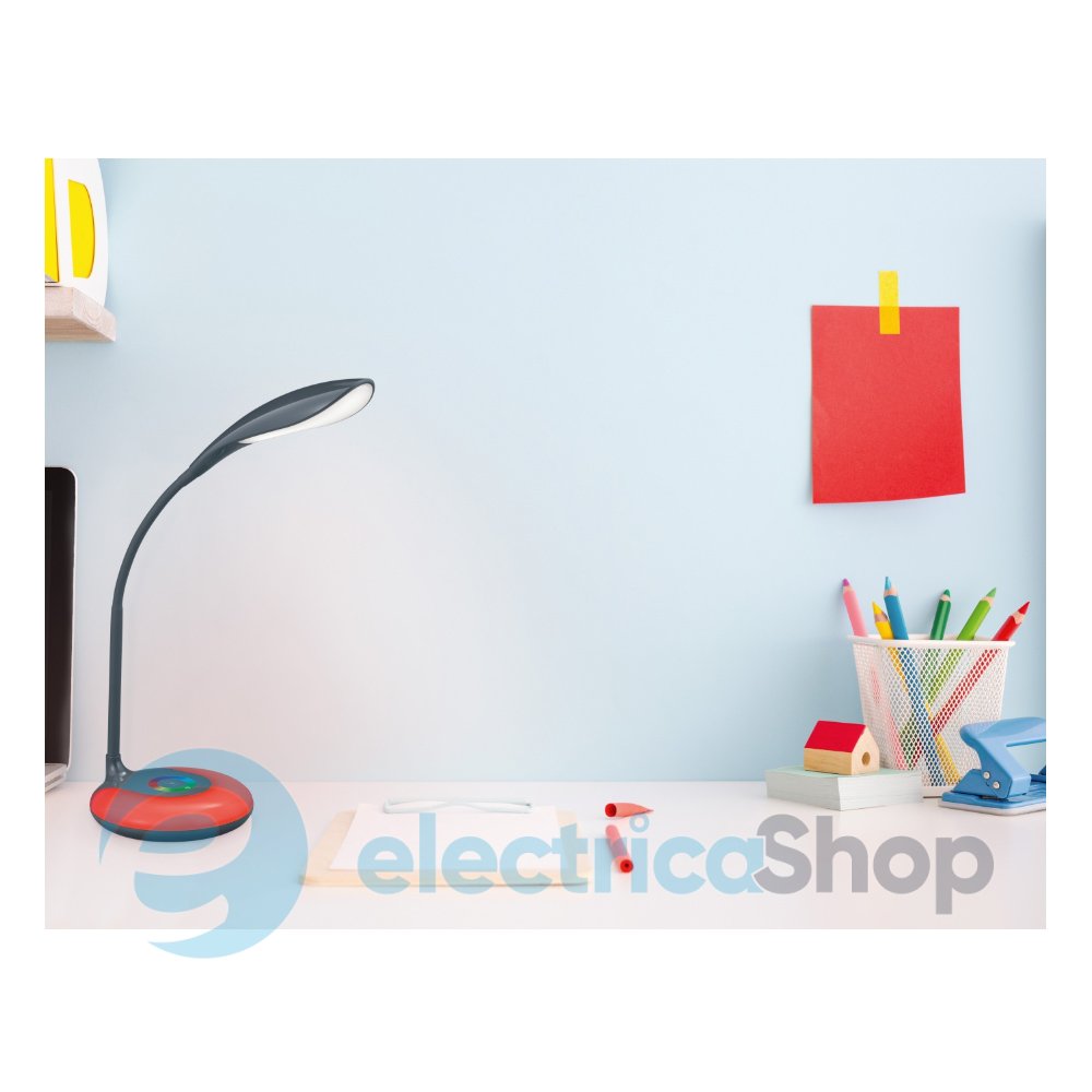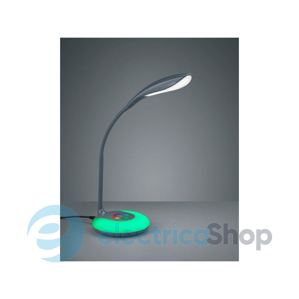 Настільна лампа TRIO KRAIT R52781242 підійде для розташування в дитячій кімнаті, на столі офісу або робочій зоні. Лампа має функцію перемикання світлових режимів, доповнена функцією RGB. Ніжка плафона гнучка.