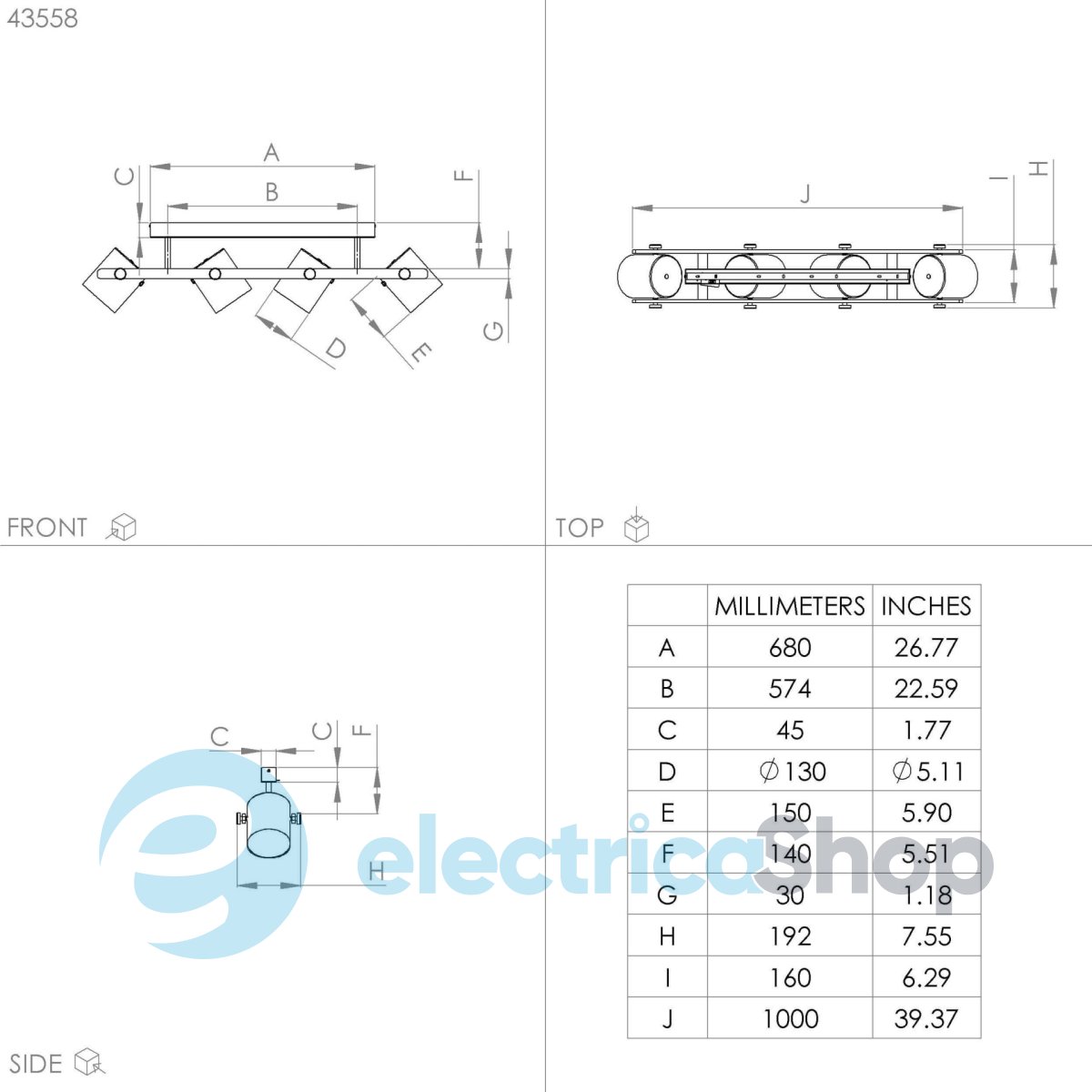 - Кількість ламп, шт: 4