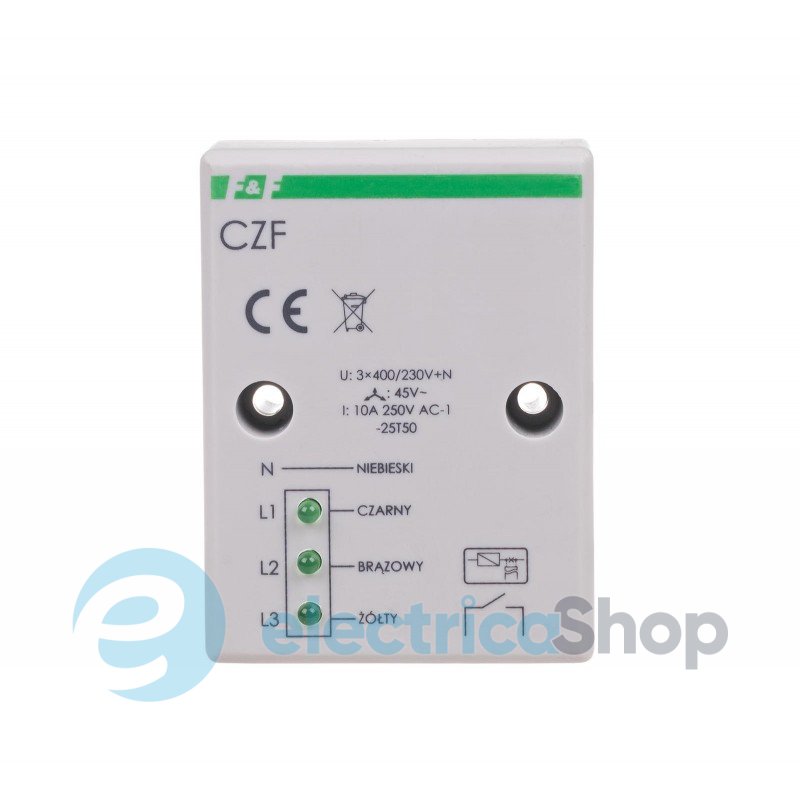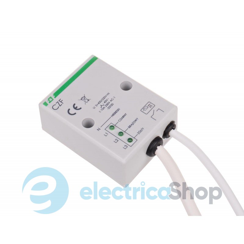 З встановленим порогом асиметрії напруг спрацьовування. Контакт 1NO. Реле пропадання фаз призначене для захисту електричного двигуна з живленням від трифазної мережі у випадку зникнення напруги принаймні на одній з фаз або асиметрії напруг між фазами.