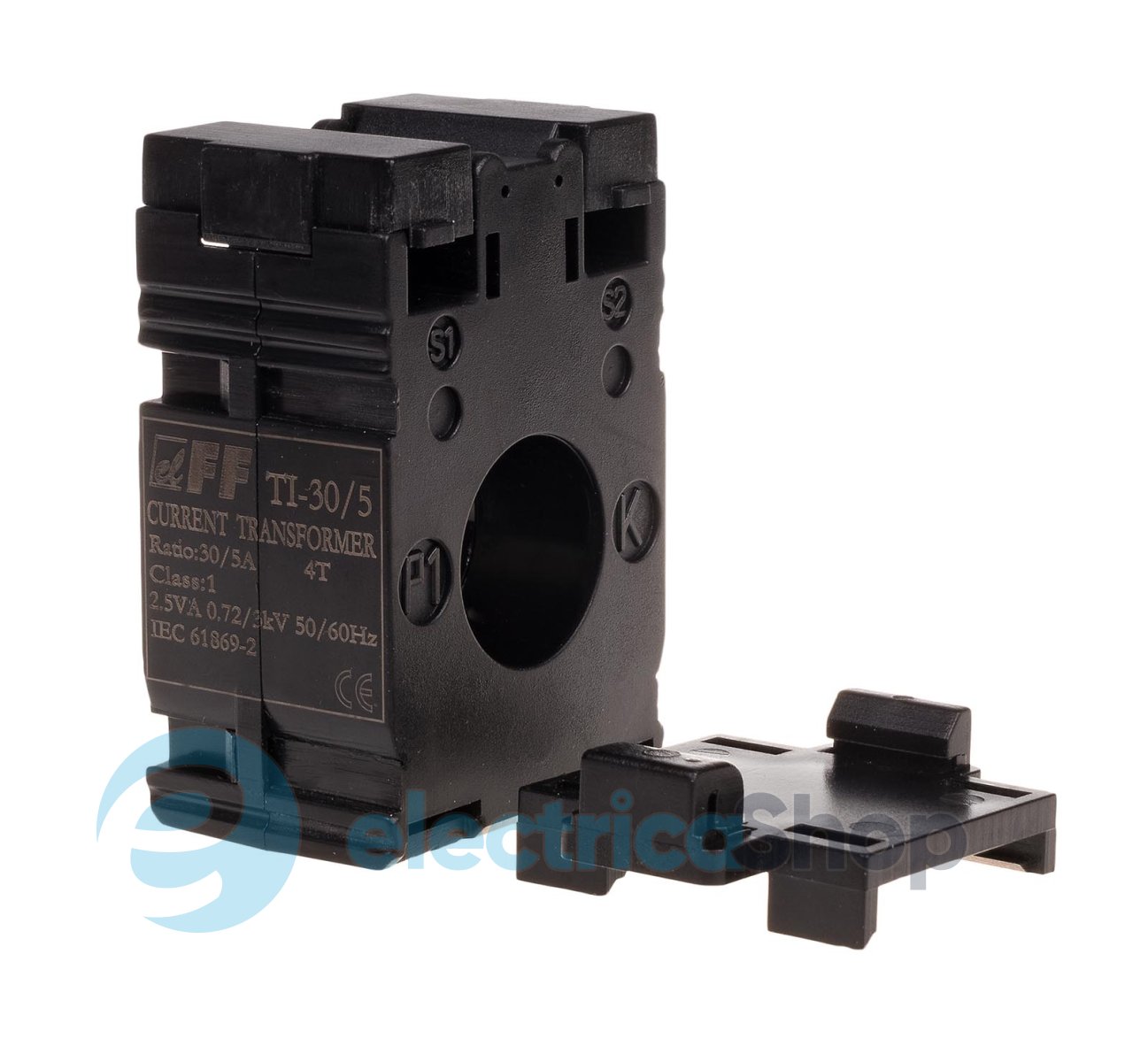 [кг]TI-30* 30/5 1 1 Ø22 87,5×104 0,135 TI-40 40/5 1 1 Ø22 87,5×104 0,135 TI-50 50/5 1 2,5 Ø22 87,5×104 0,135 TI-60 60/5 1 2,5 Ø22 87,5×104 0,135 TI-75 75/5 1 2,5 Ø22 87,5×104 0,135 TI-80 80/5 1 2,5 Ø22 87,5×104 0,135 TI-100 100/5 0,5 2,5 30/25/20×10; Ø22 61×81×34 0,235 TI-150 150/5 0,5 2,5 30/25/20×10; Ø22 61×81×34 0,235 TI-200 200/5 0,5 5,0 30/25/20×10; Ø22 61×81×34 0,235 TI-250 250/5 0,5 5,0 30/25/20×10; Ø22 61×81×34 0,235 TI-300 300/5 0,5 5,0 30/25/20×10; Ø22 61×81×34 0,235 TI-400 400/5 0,5 10 40/30/ - ×10; Ø30 75×99×40 0,305 TI-600 600/5 0,5 10 40/30/ - ×10; Ø30 75×99×40 0,305 - Тип трансформатора: Однофазний