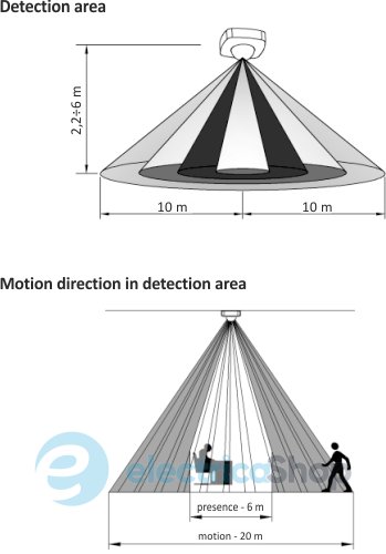 Призначення: Датчик руху та датчик присутності використовуються для автоматичного, тимчасового включення освітлення у разі появи або присутності особи чи іншого об'єкта в таких місцях, як коридори, внутрішні двори, під'їзні шляхи, гаражі тощо.