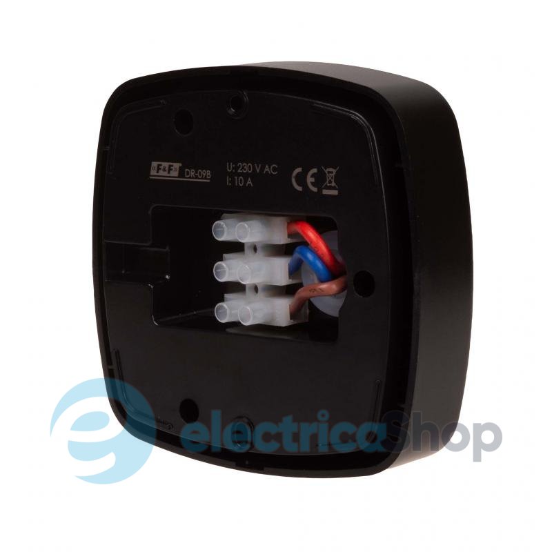 Принцип дії: Датчик виявляє джерела інфрачервоного випромінювання. Аналізуються такі параметри, як: розмір об`єкта, кількість випромінювання тепла та швидкість руху між окремими секторами виявлення. Рух у зоні дії автоматично включає освітлення. З моменту включення, безперервний рух призводить до збільшення проміжку часу освітлення. Відсутність руху в зоні дії призводить до вимкнення освітлення через встановлений проміжок часу. При відновленні руху в зоні дії датчика освітлення ввімкнеться знову на встановлений проміжок часу. Характер дії дає змогу використовувати DR-09 як датчик присутності. Датчик руху оснащений сутінковим автоматичним пристроєм, що перешкоджає включенню регульованого освітлення протягом дня. Стан виявлення та готовність включити освітлення активізується лише в сутінки. Час активації датчика може регулюватися користувачем за допомогою потенціометра. Крім того, можна налаштувати час активації приймача в діапазоні від 10с до 15хвилин. Зміни температури можуть впливати на виявлення руху.