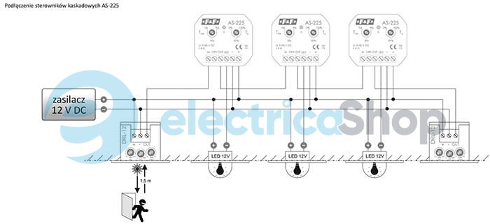 Точне налаштування виявлення від 0,1 до 2 м, пряме навантаження до 50 Вт / 12 В постійного струму, робота з каскадними реле AS-225, вбудований датчик освітленості.