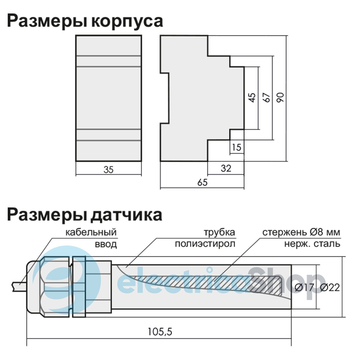 - Тип пристрою: Реле контролю рівня рідини, Датчик (зонд) для реле контролю рідини