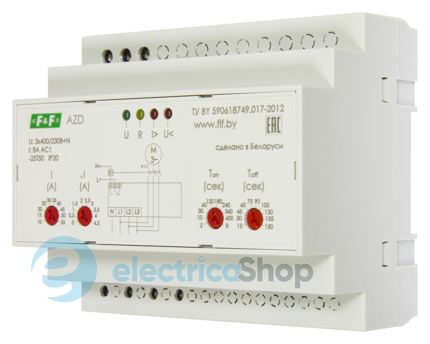 - Функціональність: Мультифункціонал, Затримка увімкнення, Затримка вимкнення, Контроль наявності фаз