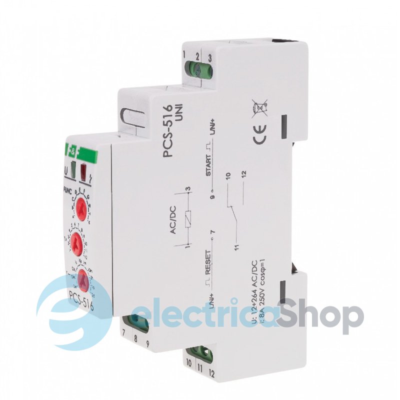 Функція A – затримка ввімкнення. В момент ввімкнення живлення контакт вихідного реле залишається в положенні 3-5 і починається відлік встановленого часу t по закінченні якого контакт переключиться в положення 3-7. В такому положенні контакт перебуватиме до вимкнення живлення, після чого можлива подальша реалізація робочого режиму. Функція B – затримка вимкнення. В момент ввімкнення живлення контакт вихідного реле переключиться в положення 3-7 і почнеться відлік встановленого часу t, по закінченні якого контакт повернеться в положення 3-5. В такому положенні контакт перебуватиме до вимкнення живлення, після чого можлива подальша реалізація робочого режиму. Функція С – затримка ввімкнення циклічна. Режим роботи затримки ввімкнення реалізується циклічно з однаковими періодами встановленого робочого часу і часу перерви. Функція D – затримка вимкнення циклічна. Режим роботи затримки вимкнення реалізується циклічно з однаковими періодами встановленого робочого часу і часу перерви. Функція E – генерування імпульсу тривалістю 0,5 секунди після закінчення встановленого часу. Функція F – генерування імпульсу встановленої тривалості t з моменту подання сигналу СТАРТ. Протягом часу t пристрій не реагує на імпульси СТАРТ. Функція G – генерування імпульсу встановленої тривалості t з моменту припинення сигналу СТАРТ. Протягом часу t пристрій не реагує на імпульси СТАРТ. Функція H – затримка вимкнення на встановлений час з можливістю її продовження. Подання сигналу СТАРТ спричинює замикання контактів 3 і 7 реле, а його припинення викликає початок відліку часу t, протягом якого контакти 3 і 7 замкнені. Припинення сигналу СТАРТ, поданого протягом часу t розпочне його відлік спочатку. Функція I – затримка ввімкнення і затримка вимкнення на встановлений час з можливістю її продовження. Якщо тривалість імпульсу СТАРТ менше 45 секунд, то реле його ігнорує, а якщо більше - то по закінченні цього часу реле вмикається і починається відлік встановленого часу t. Припинення сигналу СТАРТ, поданого протягом часу t розпочне його відлік спочатку. Функція K – вимкнення реле на встановлений час поданням сигналу СТАРТ. Протягом часу t пристрій не реагує на сигнали СТАРТ. - Напруга живлення: 12÷264 В AC/DC