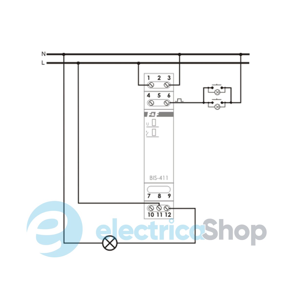 Призначення: електронне імпульсне реле BIS-411 дає можливість вмикати освітлення або інше обладнання з кількох різних точок за допомогою з’єднаних паралельно однопозиційних вимикачів кола керування.