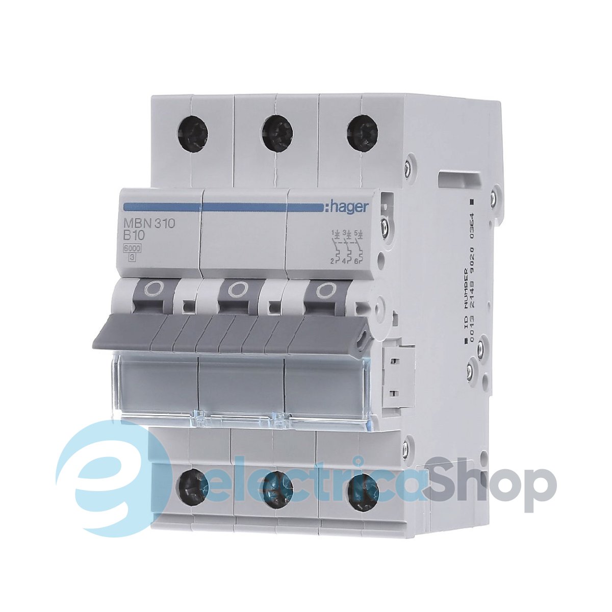 • Зміна комутації : Автоматичний вимикач повинен бути здатним безпечно відключати очікуваний максимальний струм короткого замикання в місці пошкодження. Тому очікуваний максимальний струм короткого замикання завжди повинен бути меншим за комутаційну здатність автоматичного вимикача. Автомат Hager MBN310 призначений для електромереж з максимальним струмом короткого замикання 6кА, що є достатнім показником для побутових та промислових мереж.