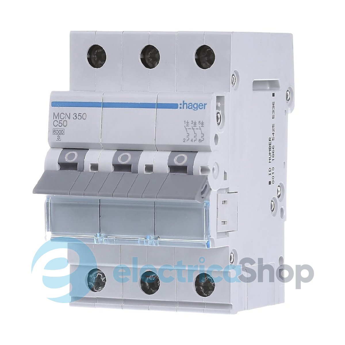 • Зміна комутації : Автоматичний вимикач повинен бути здатним безпечно відключати очікуваний максимальний струм короткого замикання в місці пошкодження. Тому очікуваний максимальний струм короткого замикання завжди повинен бути меншим за комутаційну здатність автоматичного вимикача. Автомат Hager MCN350 призначений для електромереж з максимальним струмом короткого замикання 6кА, що є достатнім показником для побутових та промислових мереж.