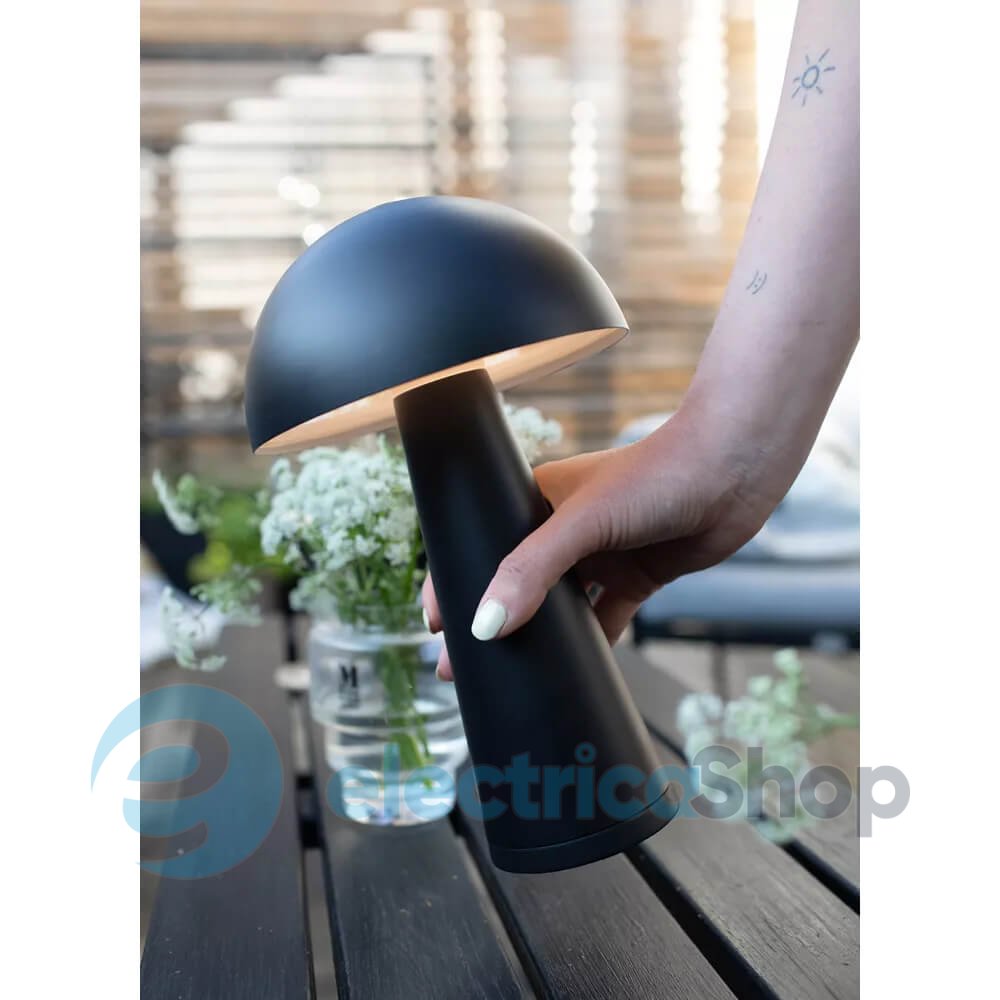 Настільна лампа MARKSLOJD Fungi Rechargeable Matt Black 108655 – це стильний предмет сучасного інтер'єру. Матиме чудовий вигляд у стилістиці модерн і мінімалізм. Виготовлена із металу. Має ступінь захисту IP44 та адаптована для використання на відкритому повітрі. Легко переміщати з кімнати до кімнати. Лампа працює від акумулятора і може використовуватися без підзарядки та дроту до 8 годин. Вбудований акумулятор заряджається через USB-C. В комплект входить кабель USB-C 1 м для зарядки. На корпусі є сенсорний димер та вимикач.