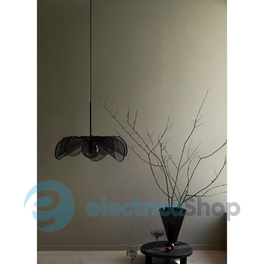 Підвісний світильник MARKSLOJD Styrka Pendant 108660 має оригінальний дизайн, його форма подібна до квітки. Має красиві деталі під старовину, кожен виток на абажурі нагадує пелюстки. Матеріал пелюсток прозорий та міцний, текстура схожа на льон. Абажур виготовлений із волокна бананового дерева. Люстра матиме чудовий вигляд у спальні, вітальні або над обіднім столом.