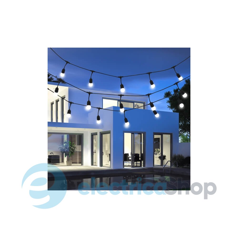 Гірлянда для вулиці Goldlux 308207 PARTY M використовується для зовнішнього освітлення, підсвічування фасадів і прибудинкових територій, альтанок або веранд. Стане практичним і стильним рішенням для оформлення екстер'єру.