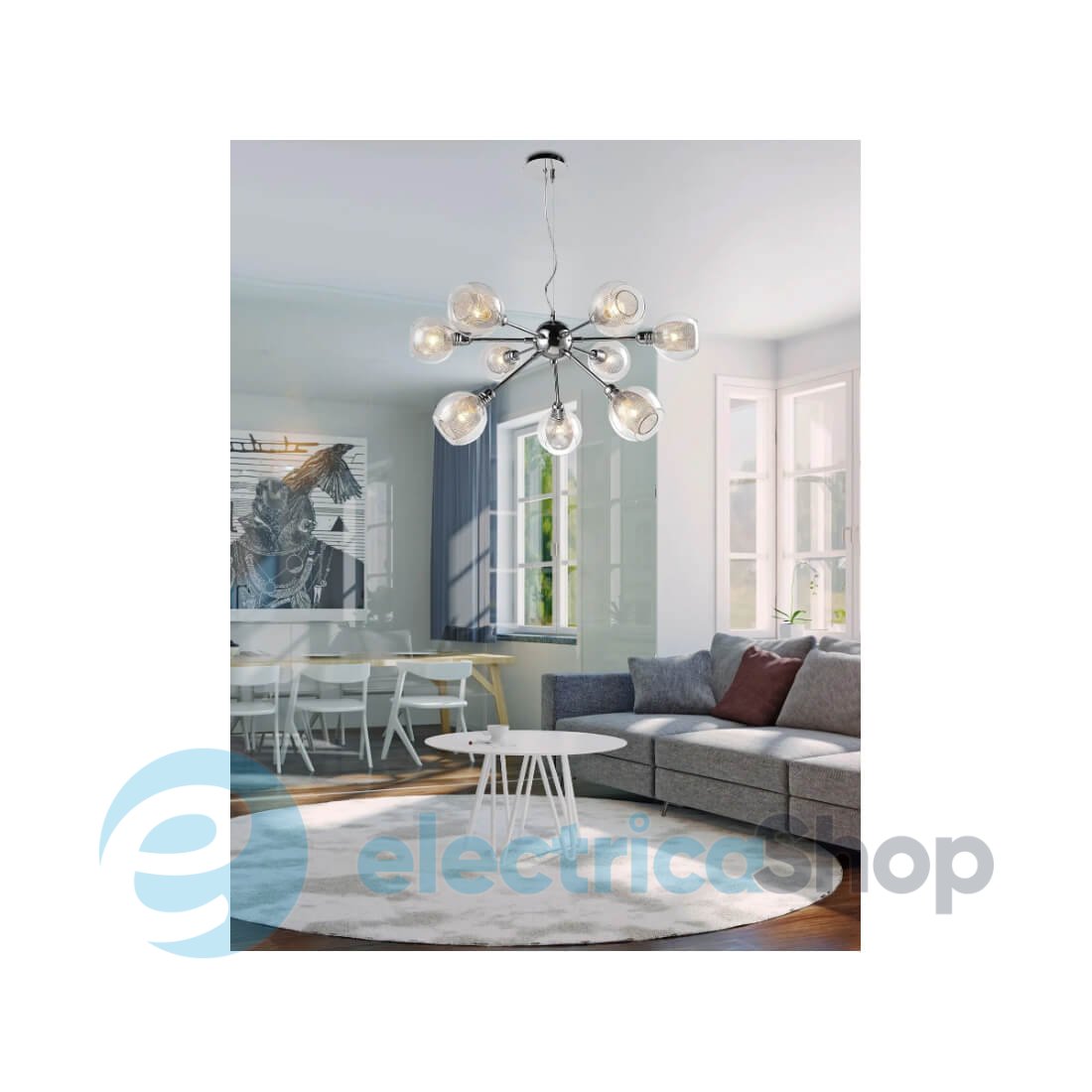 - Колір плафонів: Прозорий, Хром