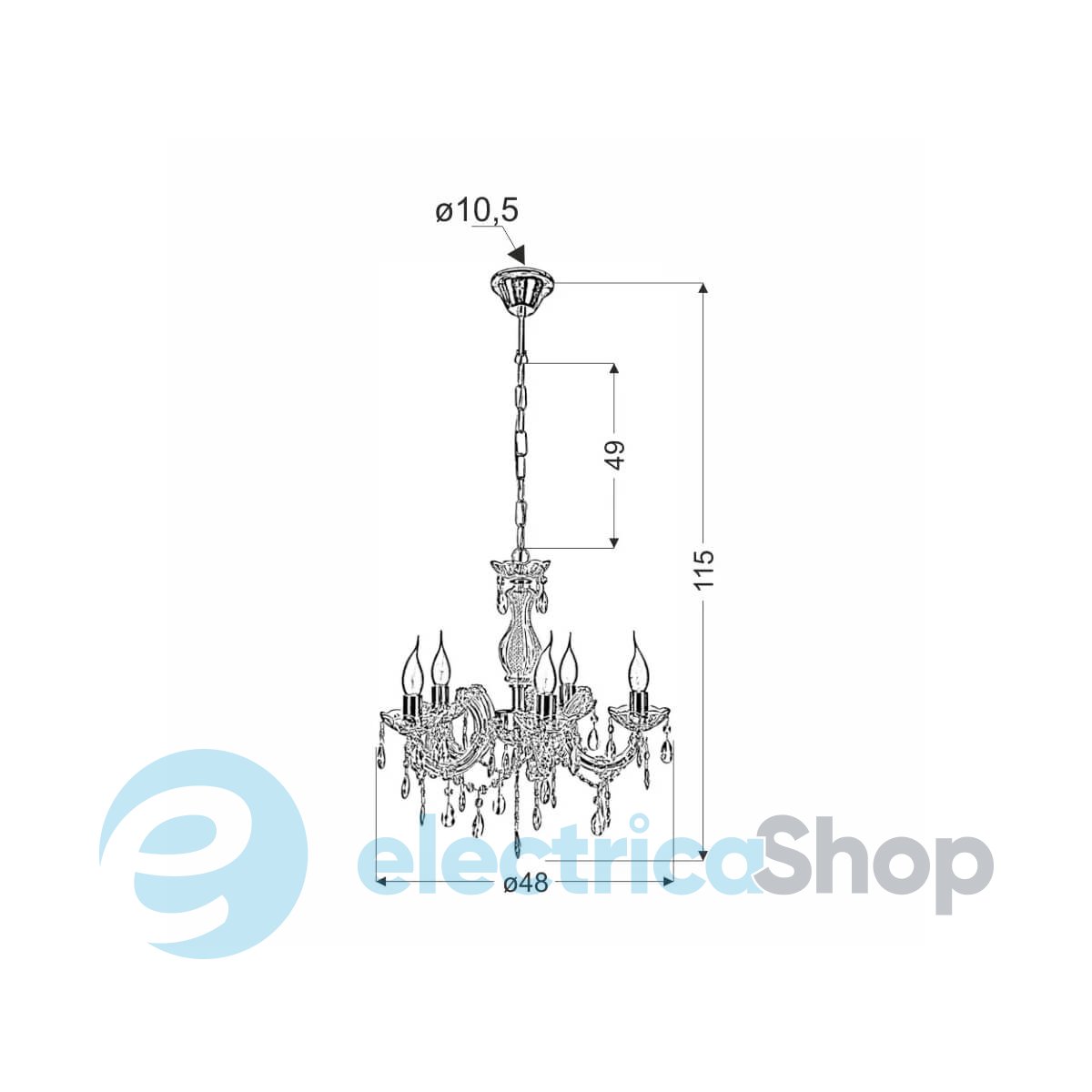 - Тип світильника: Люстра