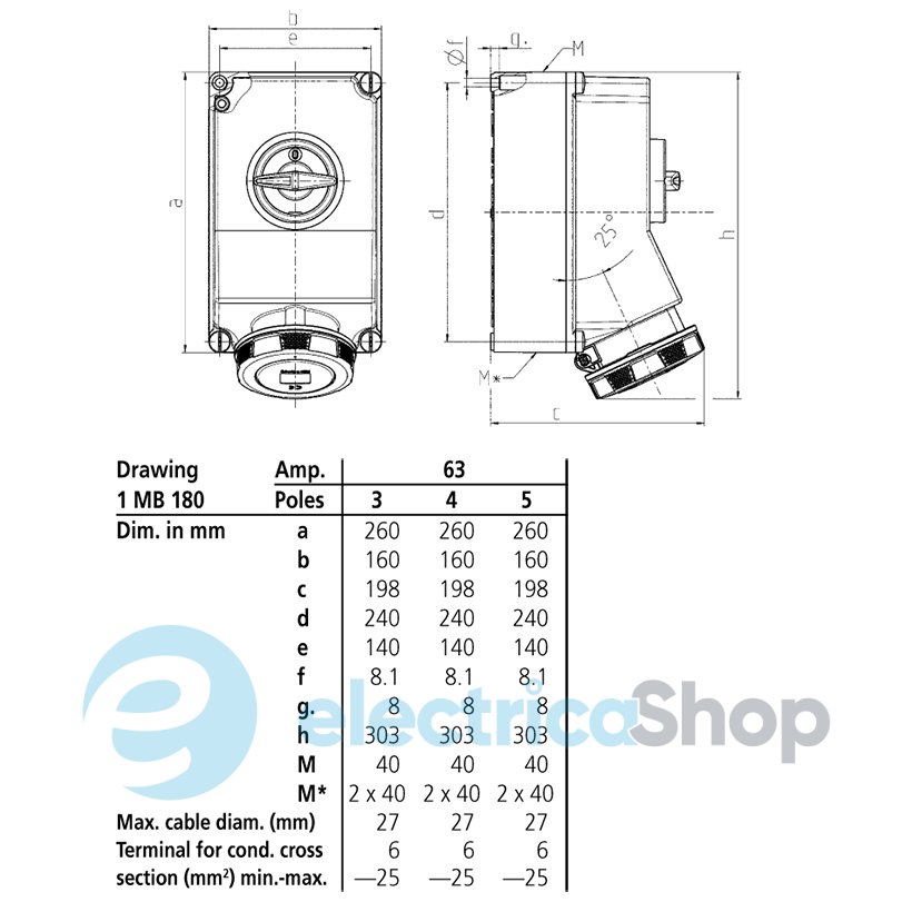 - Особливості: З механічним вимикачем, Гвинтовий затиск, Для зовнішнього монтажу
