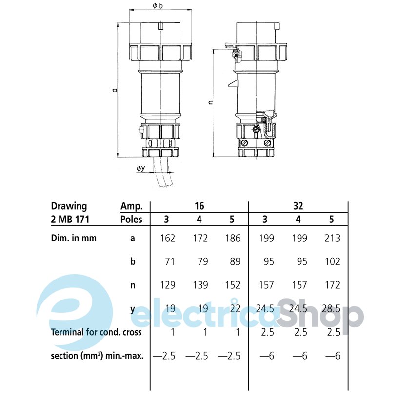 Кабельний силовий штекер CEE-типу MENNEKES серії PowerTOP 16А 4п 400В зі ступенем захисту IP67. Вилка PowerTOP має термостійкий тримач контактів, нікельовані контакти для важчих умов застосування, та кабельний ввід з зовнішнім затискачем для кабелю. Цей штекер має 4 контактів (3 фази + земля). Положення заземлюючого контакту - на 6 годин. Контакти з латуні, що додатково вкриті нікелем для більшої стійкості до корозії. Підключення кабелю - через гвинтові клеми. Країна виробництва - Німеччина.