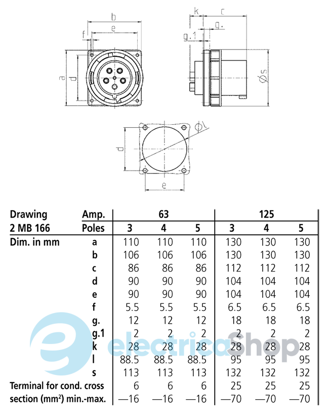Вилка для монтажу на прилади CEE-типу MENNEKES 125А 5п 400В зі ступенем захисту IP67. Цей штекер має 5 контактів (3 фази + нуль + земля). Контакти нікельовані. Термостійкі тримачі контактів. Підключення кабелю - рамні гвинтові клеми (захист від пошкодження жил). Країна виробництва - Німеччина.