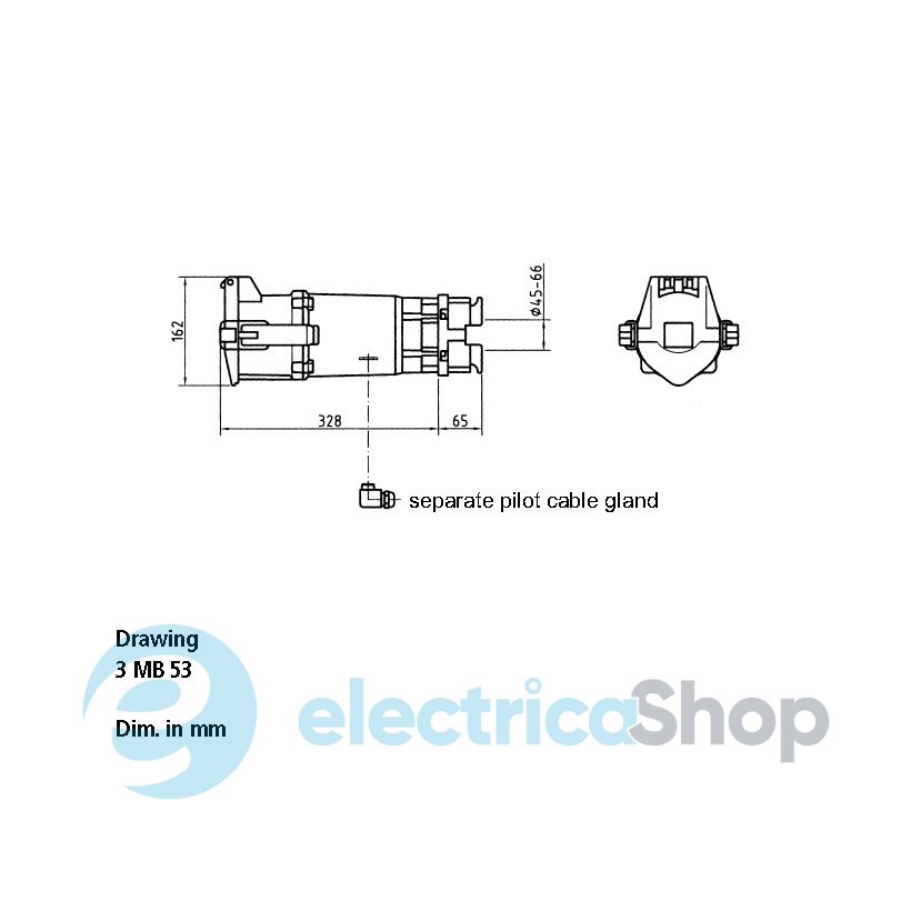 Розетка кабельна CEE-типу MENNEKES 200А 5п 400В зі ступенем захисту IP67. Ця розетка має 4 контакти (3 фази + земля). Положення контакту заземлення – на 6 годин. Підключення кабелю – через гвинтові клеми. Введення кабелю через інтегрований кабельний ввід. Сигнальні кабелі можна вводити через окремий кабельний ввід. Для замовлення треба додати до артикулу PK. Вироби, стійкі до морської води, доступні за запитом.