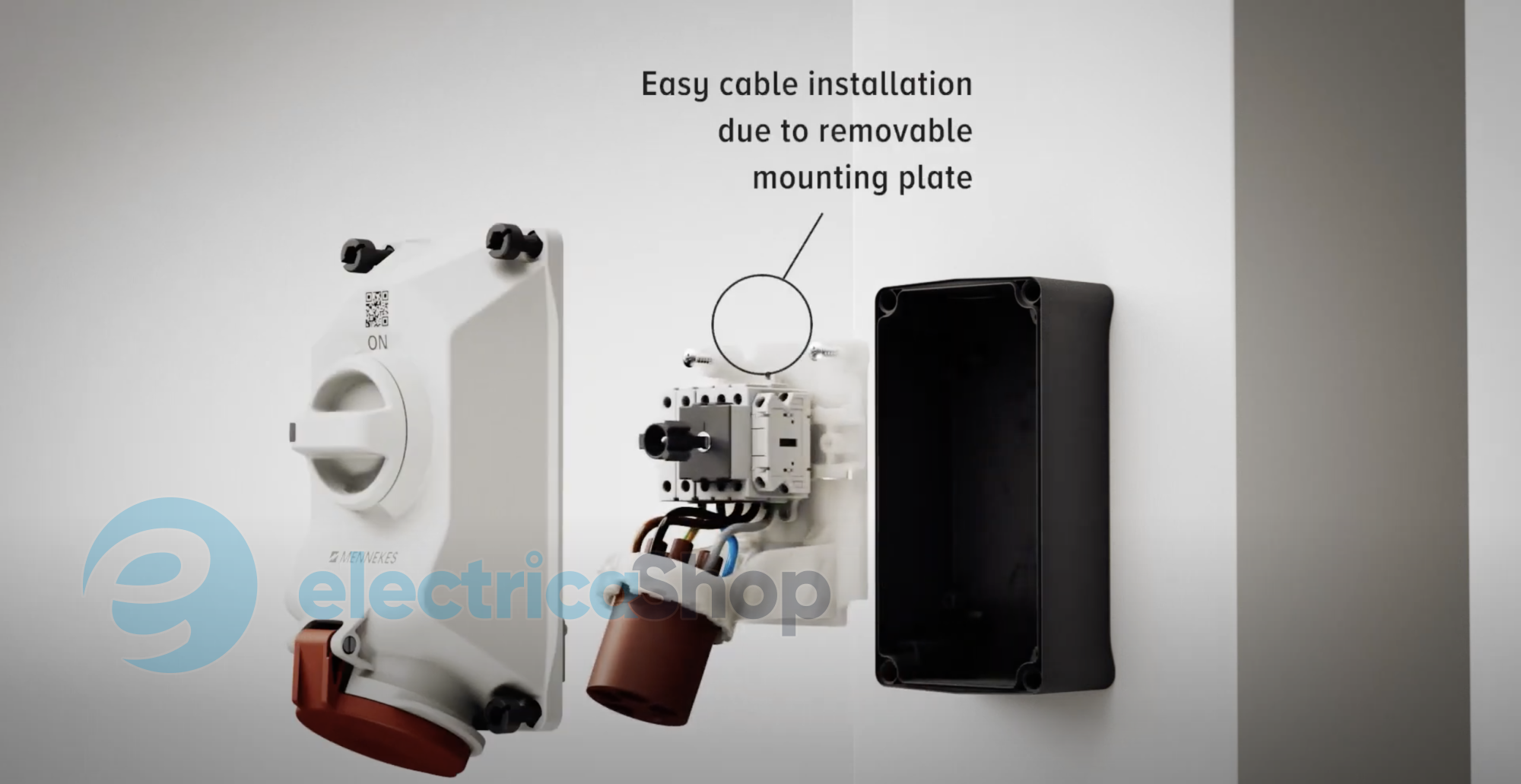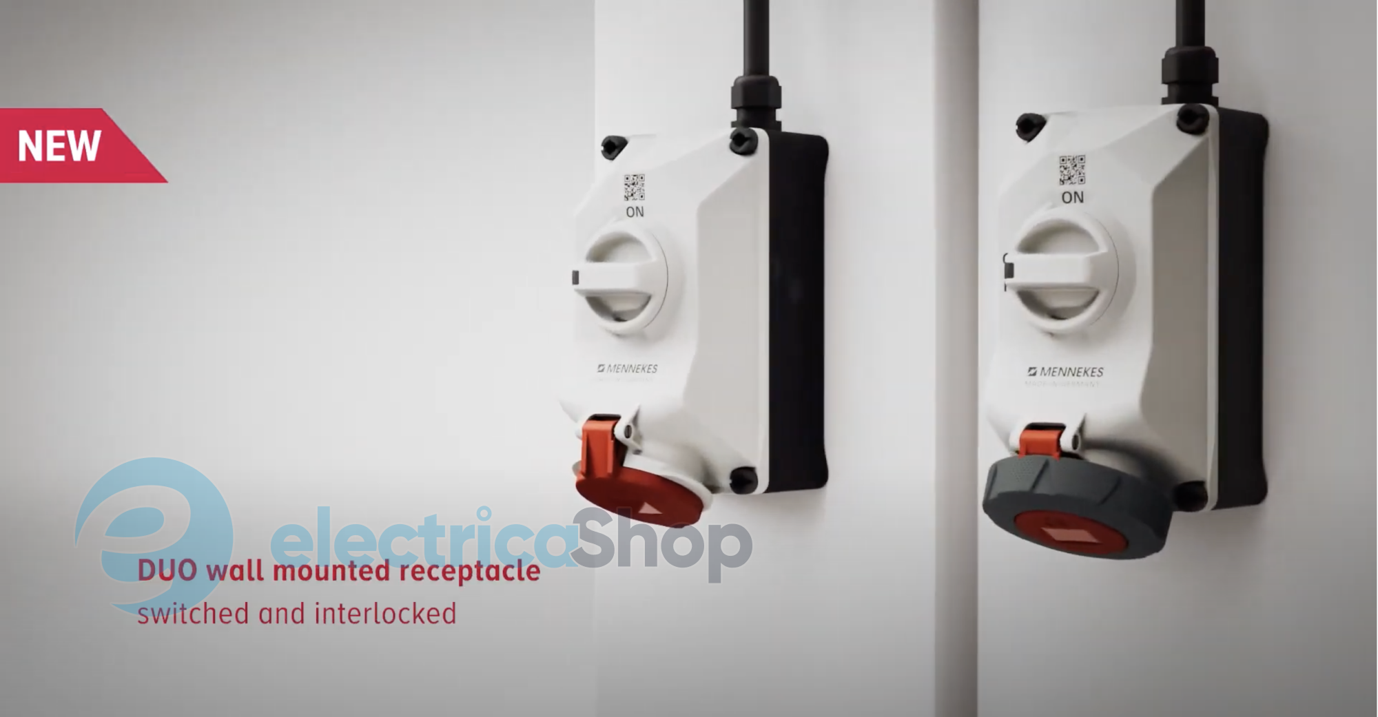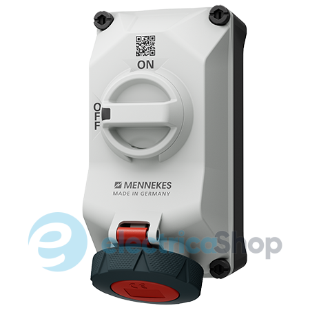 Розетка настінна CEE-типу з механічним відключенням типу DUO від MENNEKES 32А 4п 400В зі ступенем захисту IP67. Ця розетка має 4 гнізда (3 фази + земля). Підключення кабелю - гвинтові клеми. Механічне DUO-блокування. Конструкція ручки вимикача дає можливість вішати навісний замок у положенні "Вимк.", щоб запобігти несанкціонованій подачі напруги на розетку. Країна виробництва - Німеччина.