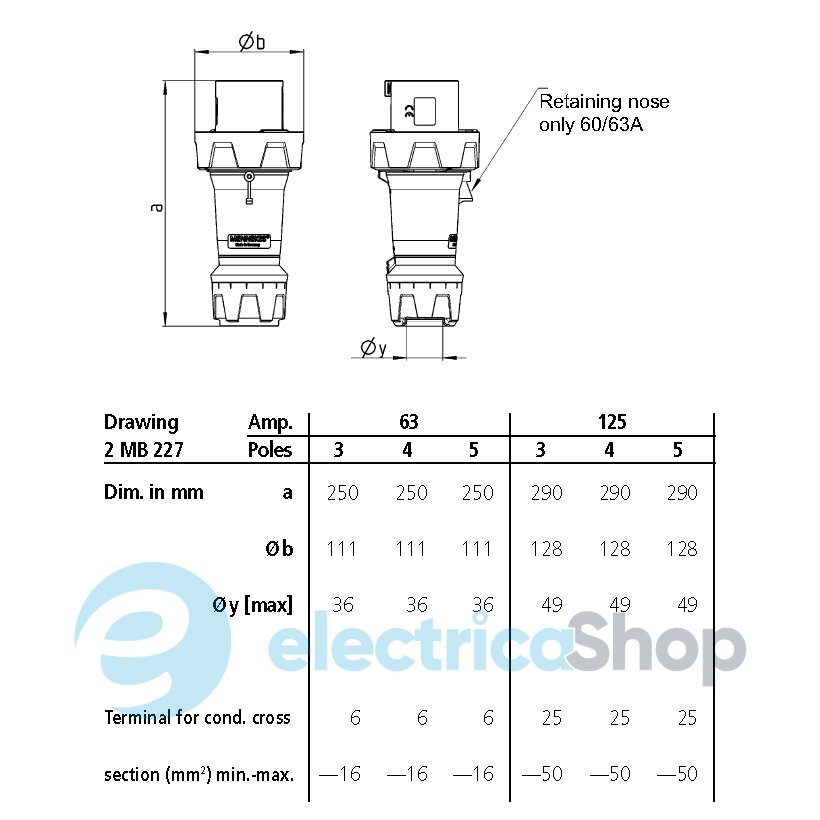Кабельний силовий штекер CEE-типу MENNEKES PowerTOP plus 125А 4п 400В зі ступенем захисту IP67. У всіх версіях вилки PowerTOP® plus вирізняються перевіреними факторами успіху: легке встановлення та безпечне та просте підключення. Вилка PowerTOP® Xtra на 125А має клас захисту IP67 і тому повністю захищена від пилу та води, навіть під тиском або при занурені у воду. Цей штекер має 4 контакти (3 фази + земля). Контакти нікельовані. Термостійкі тримачі контактів. Підключення кабелю - рамні гвинтові клеми (захист від пошкодження жил). Герметичний кабельний ввід, із розвантаження натягу та захистом від перегинання кабелю. Швидко розбірний корпус з різьбовим з'єднанням та замком-защілкою. Країна виробництва - Німеччина.