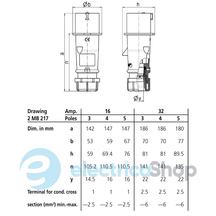 Кабельний силовий штекер CEE-типу MENNEKES серії AM-TOP 32А 3п 230В зі ступенем захисту IP44. Вилка AM-TOP завдяки цільному відлитому корпусу має клас захисту IP44 і тому непроникна для бризок води та пилу. Цей штекер має 3 контакти (фаза + нуль + земля). Положення заземлюючого контакту - на 6 годин. Контакти стандартні, з латуні. Підключення кабелю - через гвинтові клеми. Кабельний ввід з гумовим ущільненням забезпечує розвантаження натягу та захист від перегинання кабелю. Країна виробництва - Німеччина.