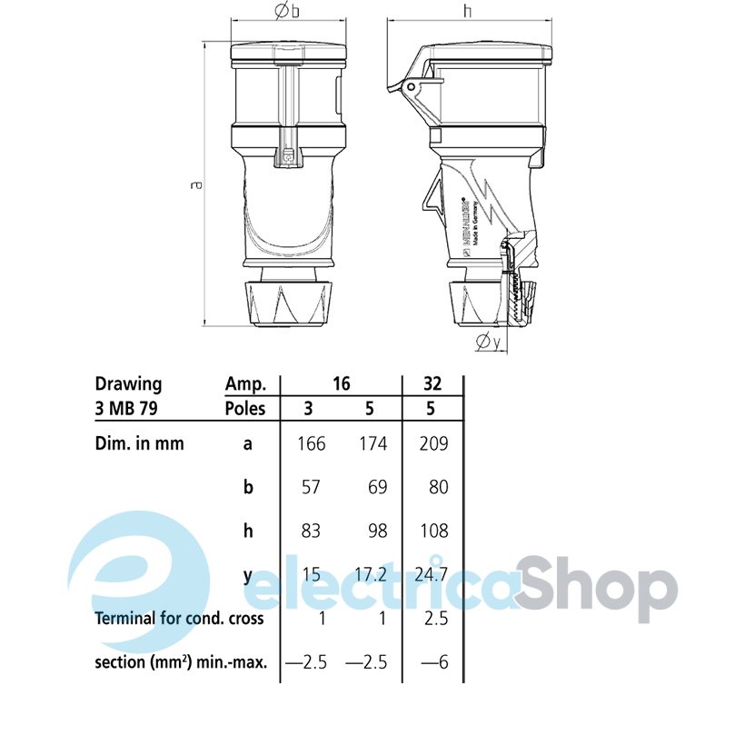 Штекер панельний для кемпінгів CaraCONTACT 16А 3п 6г 230В, IP44, MENNEKES 8001