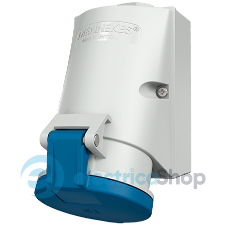 Розетка для монтажу на стіну MENNEKES 32A 3п 230B зі ступенем захисту IP44. Положення контакту заземлення – на 6 годин по циферблату. Гвинтові клеми. Підходить для послідовного підключення декількох розеток поспіль. Введення кабелю можливе або зверху (кабельний сальник замовляється окремо), або знизу (отвір можна продавити). Нижня частина корпусу може повертатися на 180˚ відносно верхньої частини. Всередині корпусу є 6 місць для розташування додаткових клем. Колір корпусу сірий. Кришка розетки синього кольору. Продукція з пілотним контактом замовляється окремо. Країна виробництва: Німеччина.