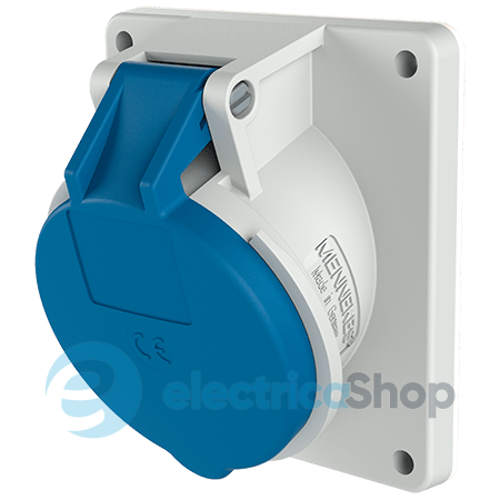 Розетка для монтажу на панель приладу MENNEKES 32A 3п 230B зі ступенем захисту IP44 та нахилом 20°. Ця панельна розетка з нахилом має габарити фланця 100х92 мм та габарити отворів для кріплення 85x77 мм. Положення контакту заземлення – на 6 годин по циферблату. Гвинтові клеми. Колір корпусу – світло сірий. Колір кришки – синій. Країна виробництва: Німеччина.