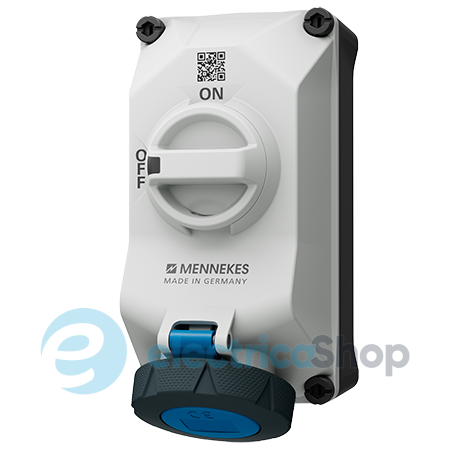 Розетка настінна CEE-типу з механічним відключенням типу DUO від MENNEKES 32А 3п 230В зі ступенем захисту IP67. Ця розетка має 3 гнізда ( фаза + нуль + земля). Підключення кабелю - гвинтові клеми. Механічне DUO-блокування. Конструкція ручки вимикача дає можливість вішати навісний замок у положенні "Вимк.", щоб запобігти несанкціонованій подачі напруги на розетку. Країна виробництва - Німеччина.