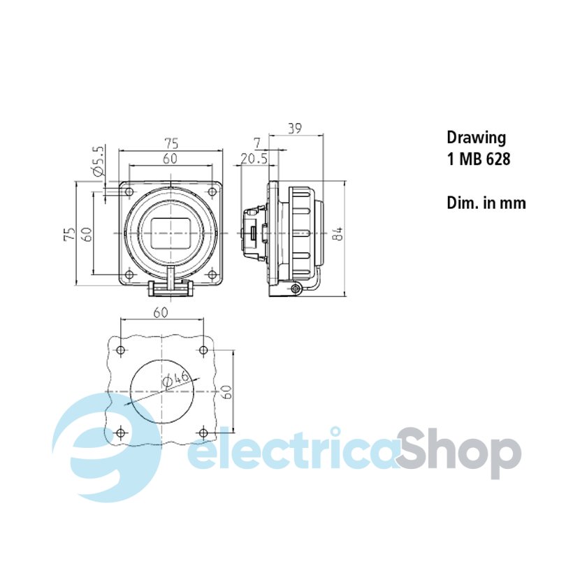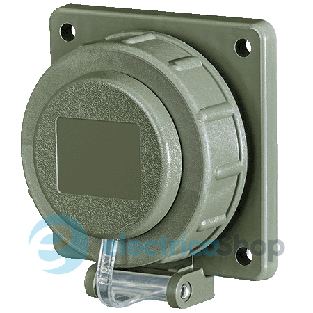 Розетка панельна типу Schuko 16А 2п+З 230В від MENNEKES зі ступенем захисту IP68 оливкового кольору (колір хакі). Без шторок захисту від дітей. Гвинтові клеми. Має байонетне кільце та кришку на пояску, для забезпечення степеня захисту IP68 навіть у непідключеному стані. Квадратний фланець 75х75 мм, з чотирма отворами для кріплення 60х60 мм. Країна виробництва – Німеччина.