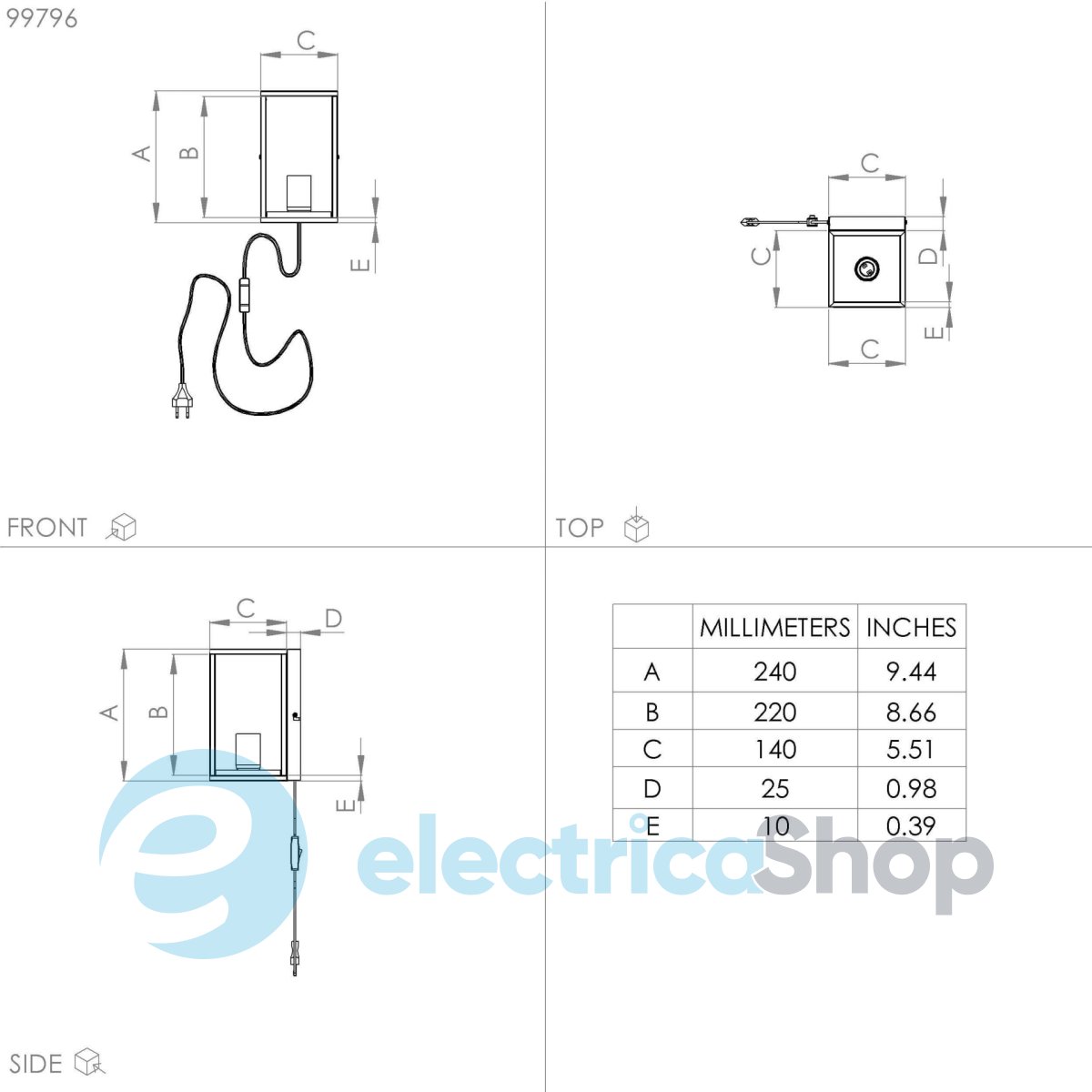 - Висота / Глибина, мм: 240