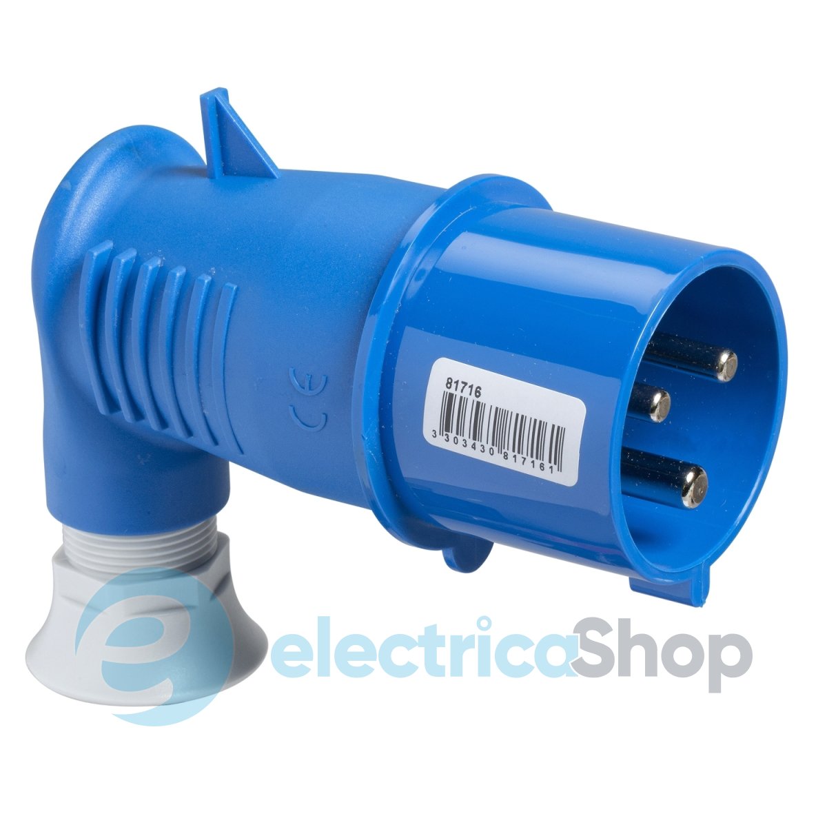 Промислова вилка кабельна 90° Kaedra Box з гвинтами, що не випадають. Конфігурація полюсів: 2P+E, номінальний струм 32А, робоча напруга 250V змінного струму. Ступінь захисту : IP44. Частота 50Гц чи 60Гц. Положення контактів за годинниковою стрілкою - 6 год.