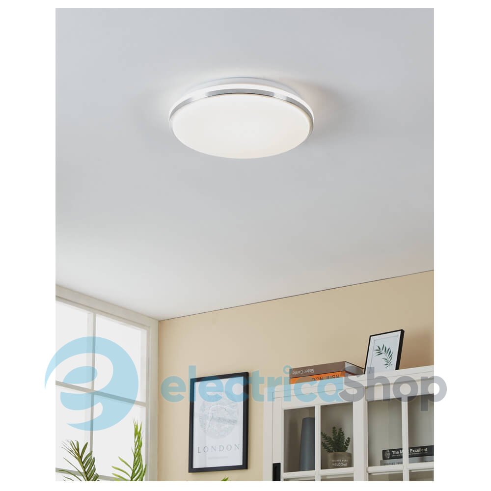 Стельовий світильник Eglo PINETTO 900366 добре впишеться в інтер'єр, оформлений в сучасному стилі. Виготовлений зі сталі та пластику, положення однієї з рамок можна змінювати, повертаючи.